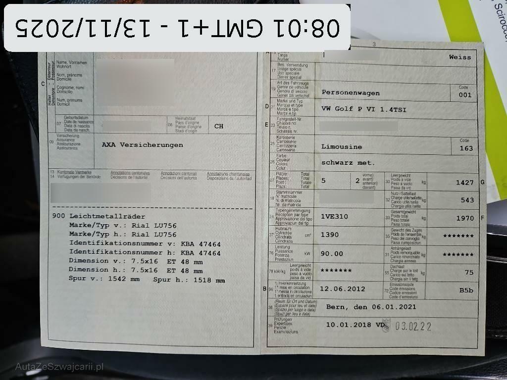 | Fahrzeugausweis | Vorhanden |