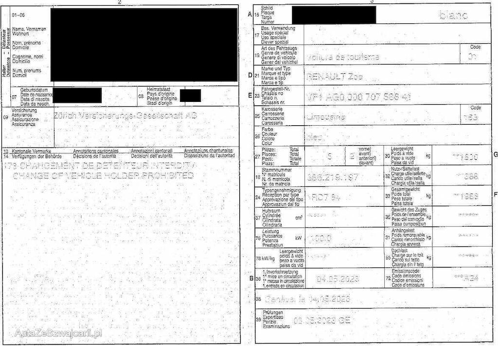 Wieder aufgefundenes Diebstahlfahrzeug. Anzahl Schlüssel: 2 / Fz-Ausweis: ja / Bordmappe+Serviceheft: Bordmappe ja, Serviceheft online via Händler (letzter Service unklar) / Km-Stand: original / VIN: original / Lenkschloss: i.O. / Zündschloss: i.O. / Reifen: Vo: 195/55 R16 91T (20%), Hi: 205/55 R16 91H (20%). Schäden: Lackschäden Stossstange vorne + hinten, Kratzer Seitenwand hinten rechts, Lackschäden Schweller links+rechst, Kratzer Kotflügel + Tür vorne links, Kratzer Heckklappe, Kratzer B-Säule rechts, alle 4 Felgen zerkratzt, Innenraum nicht sauber. Probefahrt: i.O. Ladekabel vorhanden. Die hier gemachten Angaben sind unverbindliche Beschreibungen. Sie stellen keine zugesicherten Eigenschaften dar. Der Verkäufer haftet nicht für Irrtümer, Eingabefehler und Datenübermittlungsfehler.