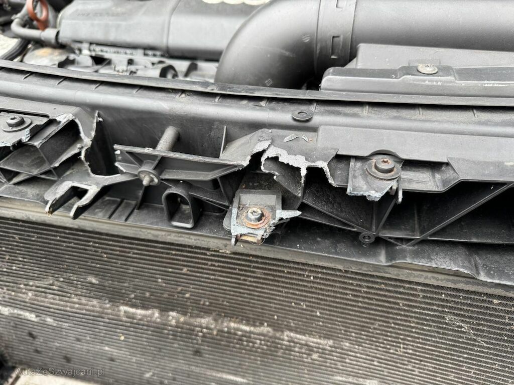 Urto parte anteriore: cofano, frontale, paraurti, mascherine, radiatori, fari, elettroventola e vari altri componenti danneggiati. Airbag anteriori esplosi. Spia avaria motore accesa. Perdita liquido di raffreddamento.