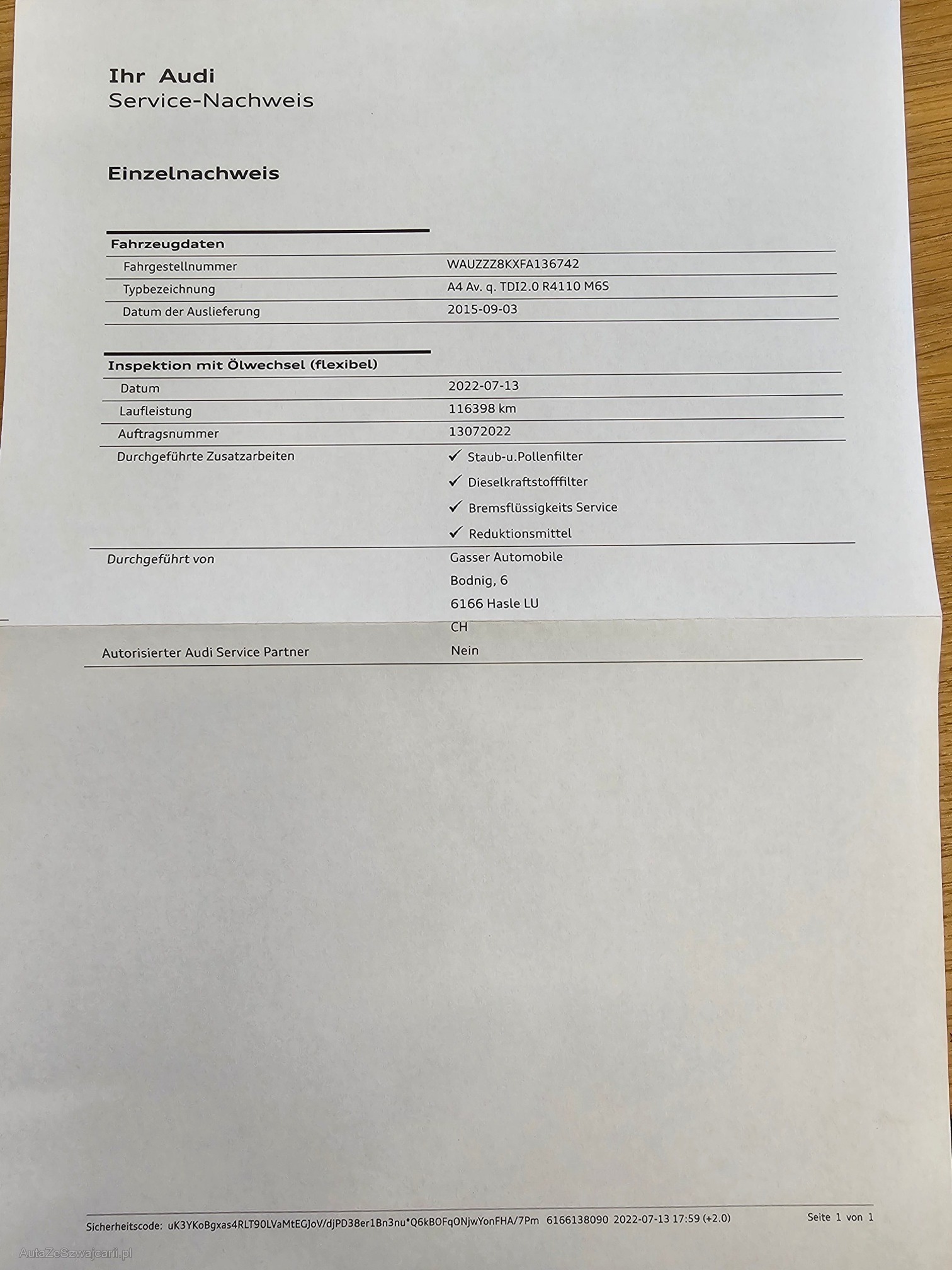 | Marka | AUDI |
