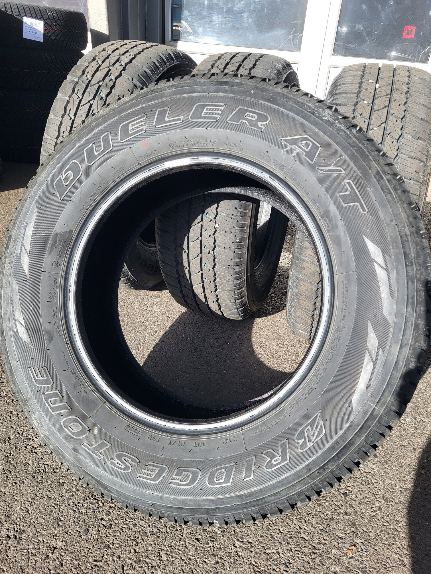 | Kommentar | Sie bieten hier auf 4 Reifen: Bridgestone Dueler 693III, 265/65 R17 112S. Produktion KW42 2024, mit ungefähr 1000km Laufleistung. Wir haben diese Reifen an einem Neuwagen Toyota Hilux demontiert, da der Kunde nur noch mit Winterreifen fahren möchte. |
