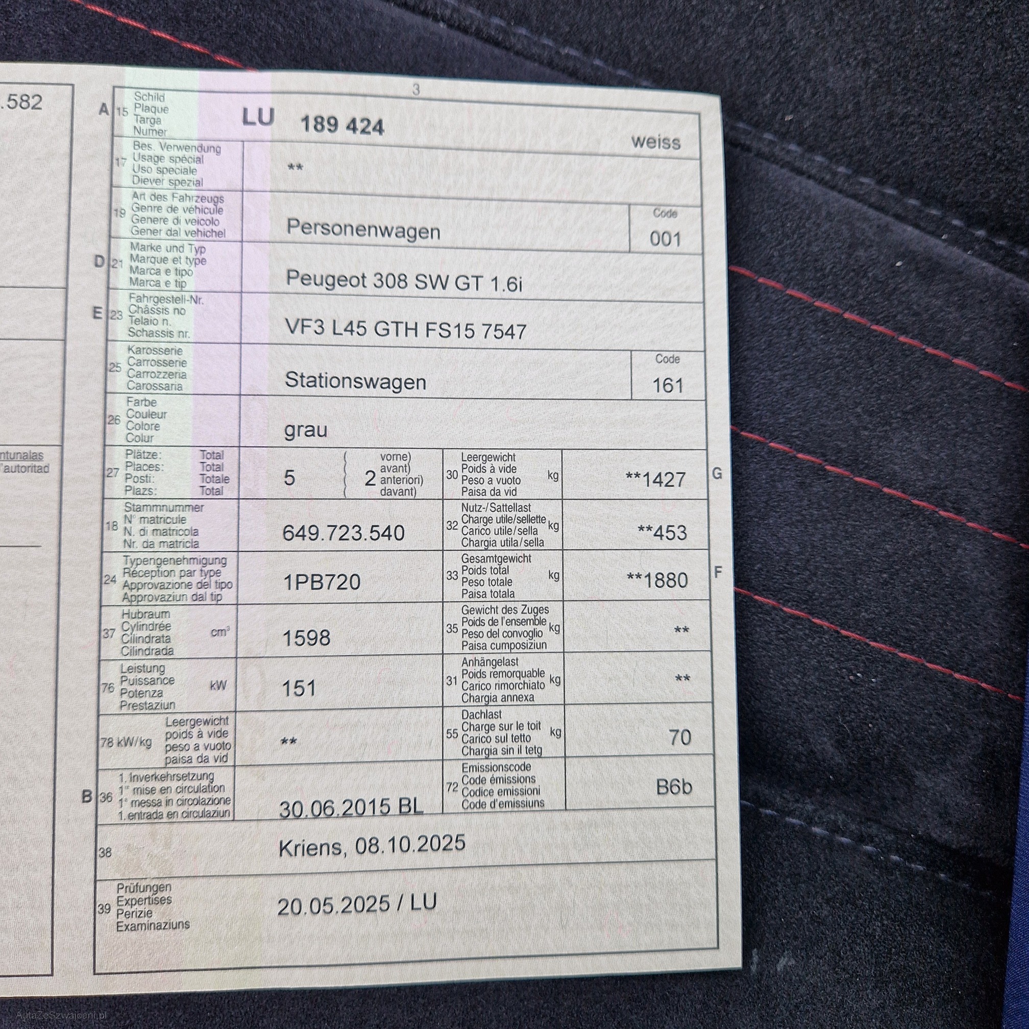 PEUGEOT 308 SW GT 1.6i