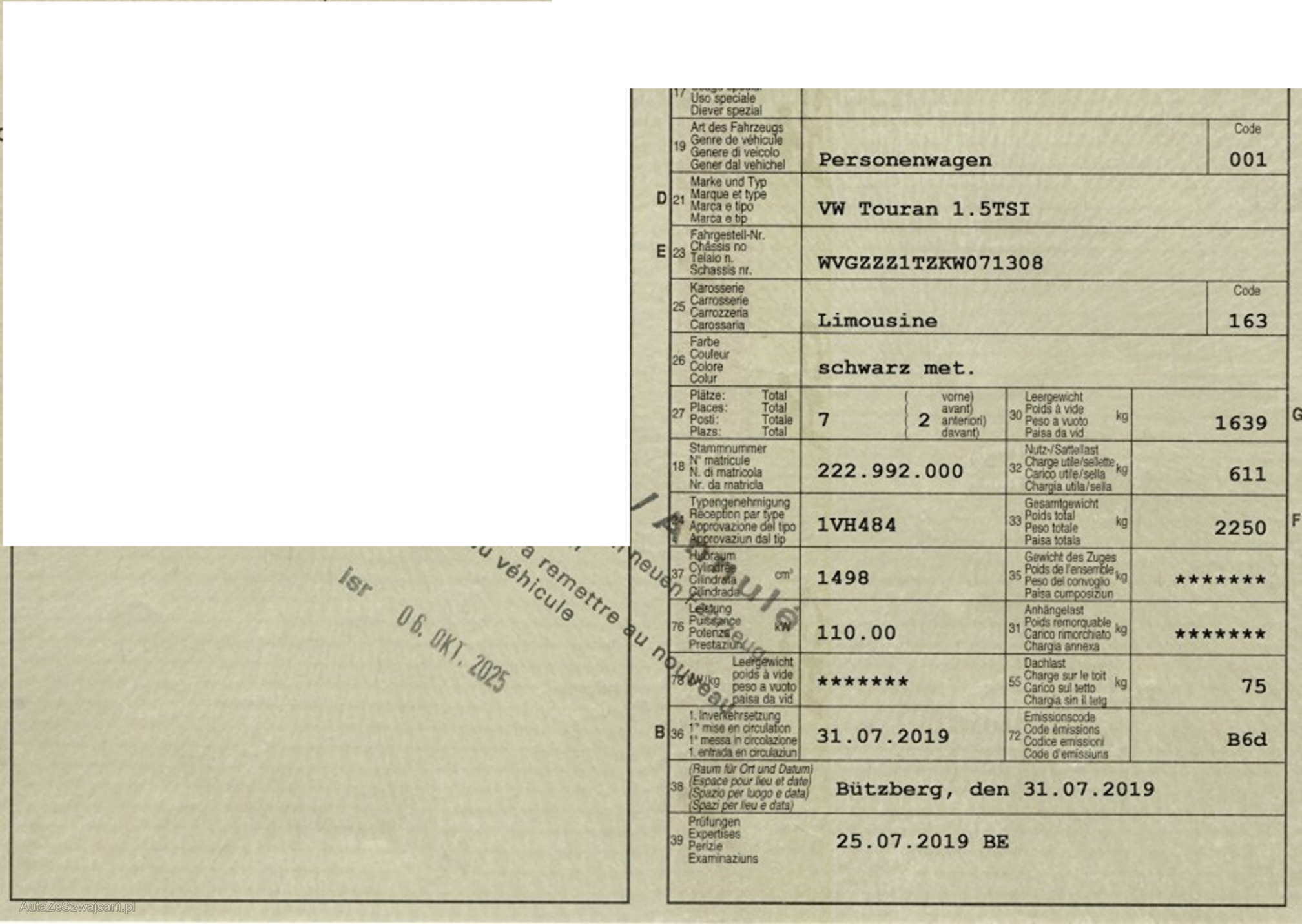 | VIN | WVGZZZ1TZKW071308 |