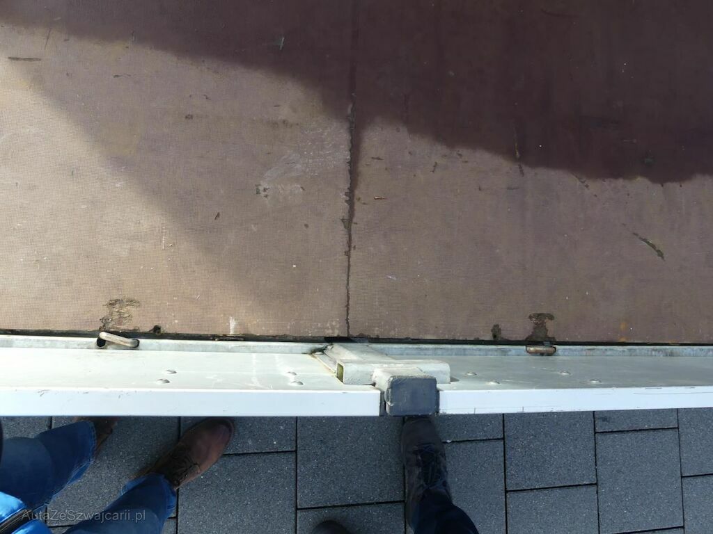 Seitenprofil links verboten, Schweissnaht gerissen und Holzboden beschädigt.