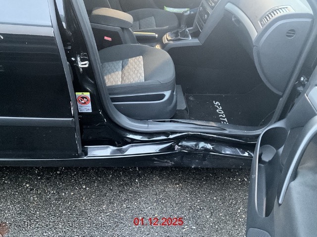 | Schadensbeschreibung | Beschreibung der Schäden: Schaden r. Seite: Kotflügel Türe v. und Schweller eingedrückt, Seitenairbag r. ausgelöst |