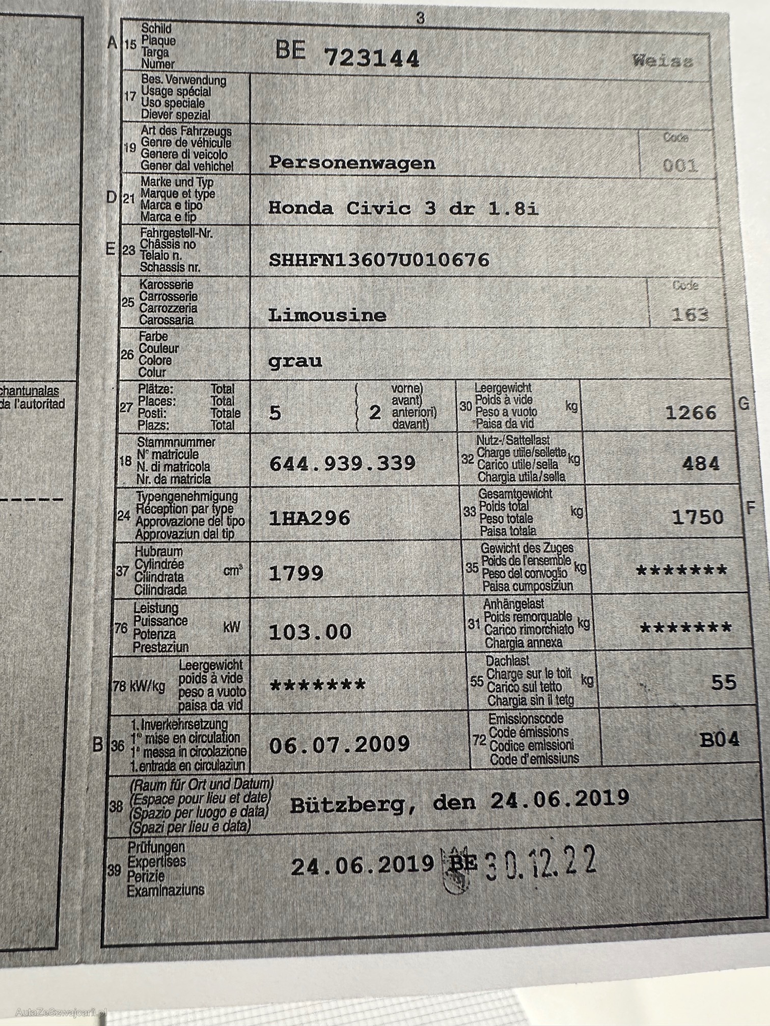 | Kommentar | Unsere Fahrzeuge wurden keiner Prüfung unterzogen. Fahrzeugkauf auf eigenes Risiko ab Platz ohne Nachwährschaft. Das Gewährleisten für Sachmängel wird weggegangen. Fahrzeuglieferung, Fahrzeugzustand und Ausstattung gemäss Bilder. |