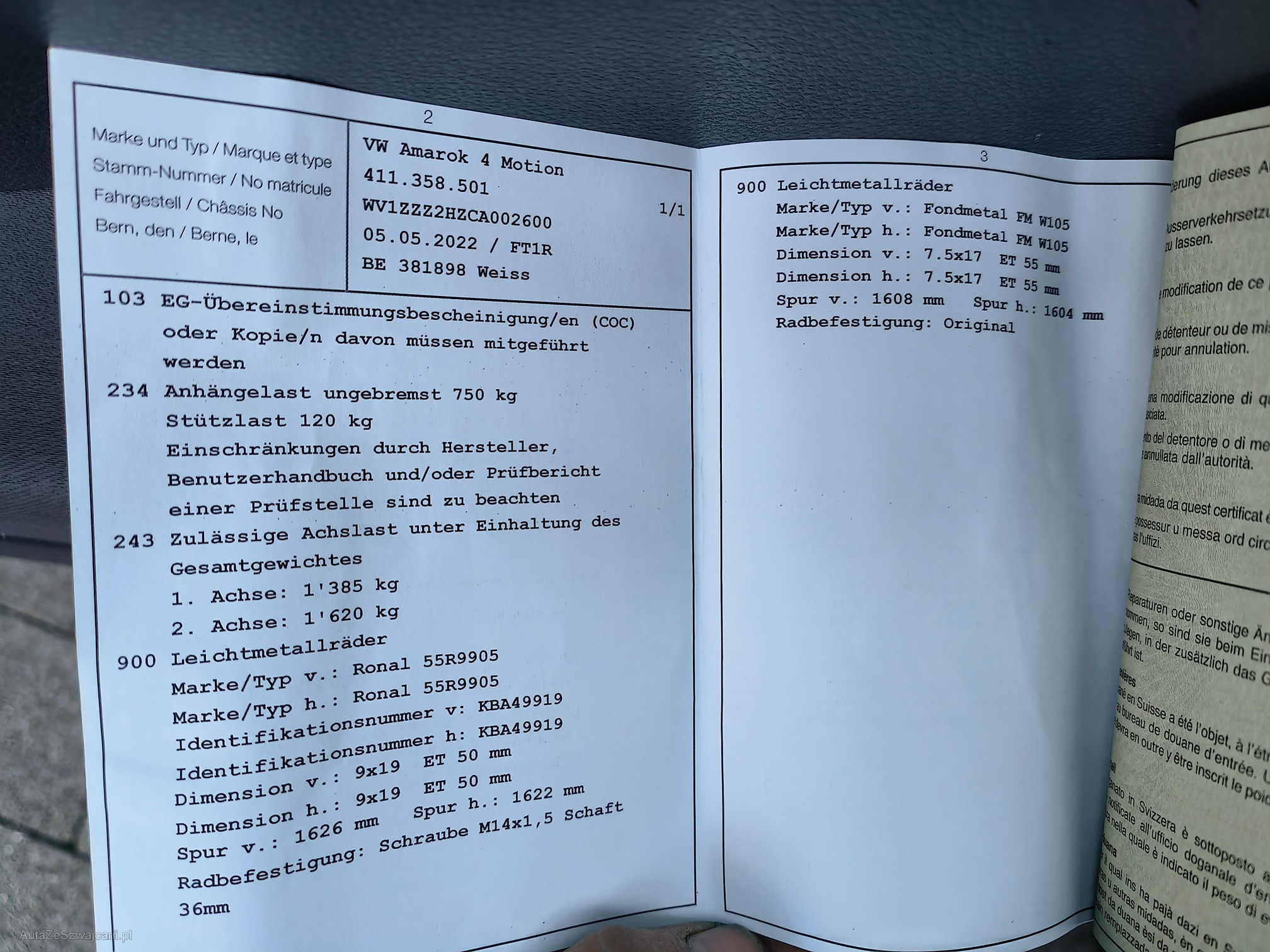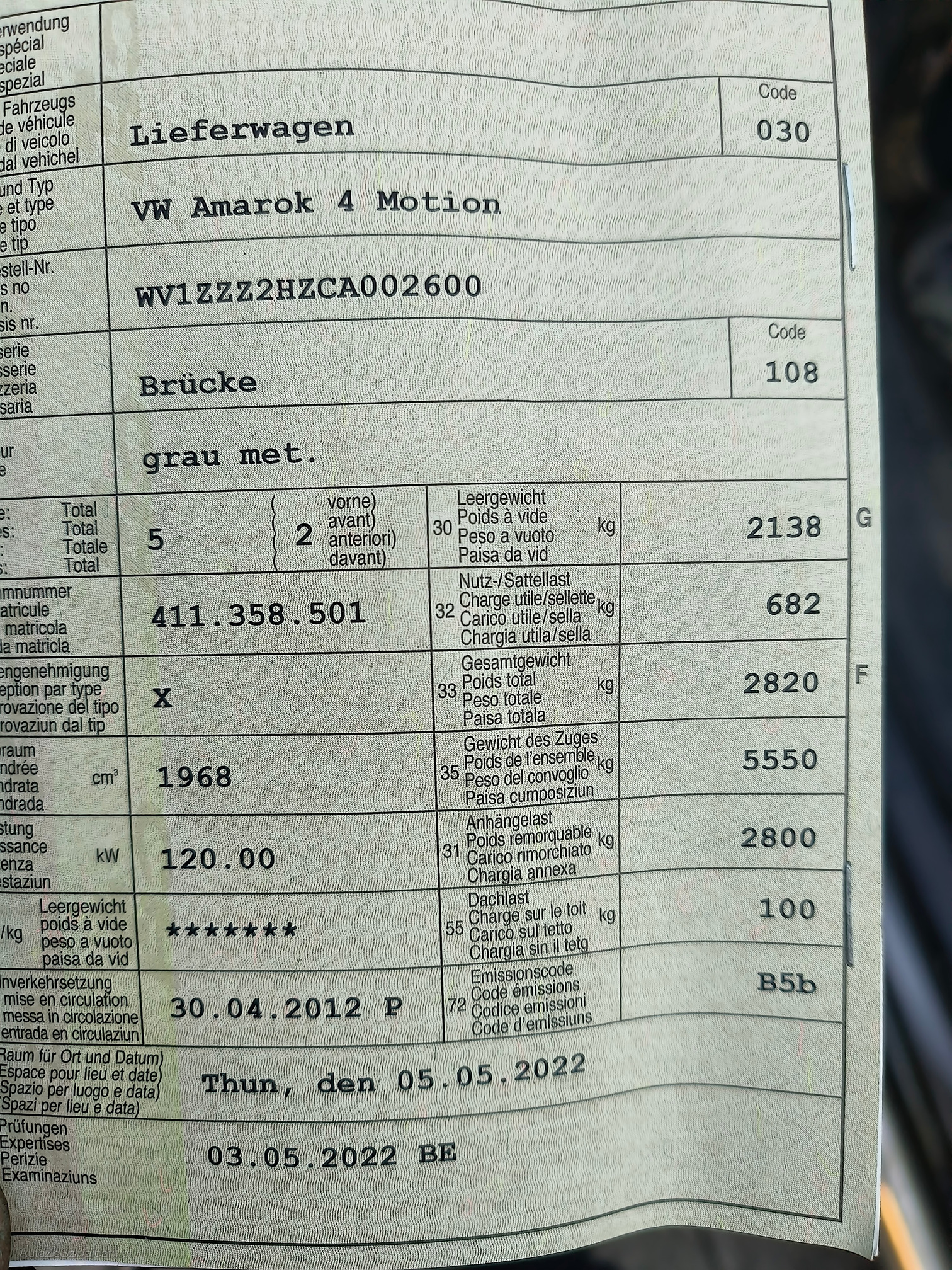 | Kommentar | Rost, Dellen und Kratzer gemäss Fotos, leichter Ölverlust am Verteilergetriebe (Foto), Partikelfiltertest wurde nich durchgeführt. Weitere unentdeckte Mängel am Fahrzeug möglich. Zusätzlicher Überrollbügel vorhanden |