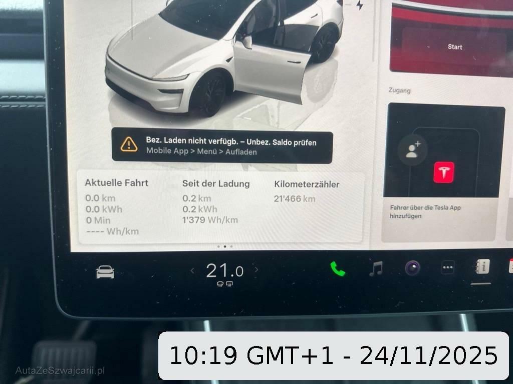 | Serienausstattung | Media: Navigationssystem mit Onboard-Karten, Fußgängerwarnsystem, Media: 8-Zoll-Touchscreen hinten, Reifendruck-Kontrollanzeige, Heckscheibenheizung, Keyless Entry, ISOFIX Kindersitzvorrichtung, Getriebe: Direktantrieb, Licht: Fernlichtautomatik, Lenkrad: Lenkradheizung, Assist: Notbremsassistent, Bodenleuchten-Emblem, Media: Bluetooth Freisprecheinrichtung, Bordcomputer, Lenkrad: Multifunktionslenkrad, Allradantrieb permanent, Sitze: Rücksitzlehne geteilt abklappbar, Elektrisch gesteuerte Luftauslässe für 1. und 2. Sitzreihe, Seitenaufprall-Schutzsystem, Sitze: Ausführung 5 Sitzplätze, Black Interior, Media: USB-A Anschluss im Handschuhfach mit abnehmbaren 128 GB Speichermedium, Premium-Textilverkleidung, Licht: Nebelschlussleuchte, Räder: 19" Crossflow Wheels, Aussenspiegel rechts und links beheizt, elektrisch verstell- / und einklappbar, Lackierung: Pearl-Lackierung, Media: Premium-Audiosystem - 15 Lautsprecher, - Subwoofer, Zentralverriegelung mit Fernbedienung, Easy Entry - Sie können eine Easy Entry-Einstellung festlegen, die die Position des Lenkrads und des Fahrersitzes anpasst, um den Ein- und Ausstieg in bzw. aus Model Y zu erleichtern, Airbag: Airbag Fahrer und Beifahrer, Assist: Parkassistent, Sitze: Vordersitze heizbar, Assist: Spurhalteassistent, Beschleunigungsboost, Heckspoiler, Assist: Kollisionswarnung, Sitze: Vordersitze elektrisch verstellbar, Elektrische Fensterheber vorne und hinten, Assist: Lenkassistent - Mit den neuen Tesla Vision-Kameras, Sensoren und der erhöhten Rechenleistung kann Ihr Tesla nun über komplexere Strassenführungen navigieren., Getöntes Verbundsicherheitsglas mit metallischer Infrarot-Reflexionsbeschichtung, Heckklappe automatisch, virtual Pedal, Dekor: Aluminiumdetails und Premium-Textilbezug, Airbag: Seiten- und Kopfairbags, Supercharger Network Access + Pay-as-you-go, Assist: Adaptive Cruise Control, Fahrwerk: Federung der 2. Generation, Licht: Drittes Bremslicht LED, Garantie: 8 Jahre oder 192'000 km auf Elektroantriebssystem und Batterie (ab 1. Inv.), Schwellerleisten-Schriftzug, Ambiente Beleuchtung LED, Aussenspiegel automatisch abblendend, Panorama-Glasdach, Lenkrad: Lenkrad elektrisch längs- und höhen-verstellbar, Garantie: 4 Jahre oder 80'000 km, Mittelkonsole mit Ablagefach, 12-Volt-Steckdose vorne, Sitze: Vordersitze belüftet, Assist: Frontaufprallwarnung, Performance Upgrade, Ladekabel, Sitze: Rücksitze heizbar, Wegfahrsperre elektronisch, Licht: LED-Nebelscheinwerfer, Sicherheitsgurtsystem, Assist: 8 Aussenkameras inkl.Frontkamera, Scheibenwischer vorne mit Intervall, Media: Wi-Fi Hotspot, Media: Media Player - Radio - Bluetooth - Streamen - Spotify - Caraoke - TuneIn - Tidal, Assist: Park Distance Control (PDC), Gurtstraffer vorne, Servolenkung, Media: 15,4-Zoll-Touchscreen vorne, Licht: LED-Tagfahrlicht, Sitze: Kopfstützen verstellbar, Elektronisches Stabilitäts-Programm (ESP), Licht: LED Scheinwerfer, Sitze: Rücksitze elektrisch umklappbar, Reifenreparatur-Set (Tire Fit), Airbag: Airbag Beifahrer deaktivierbar, Heckklappen-Emblem, Sitze: Fünfsitzer-Innenraum, Klima: Klimatisierungsautomatik, Assist: ABS und TCS |