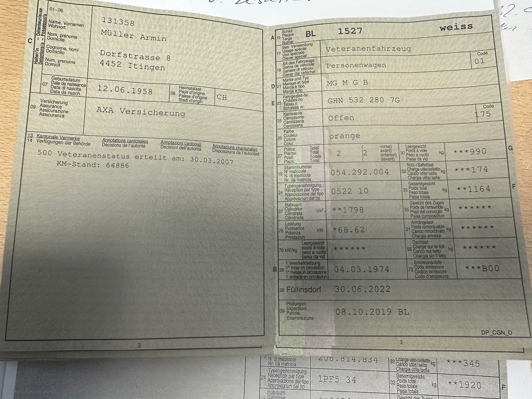 | Kommentar | Sehr schönes Veteranenfahrzeug aus 2. Hand mit Original Patina und einwandfreiem Dach - kein Rost - Original Werkstatthandbuch und original Lenkrad - Vorbesitzer hatte ihn über 35 Jahre |