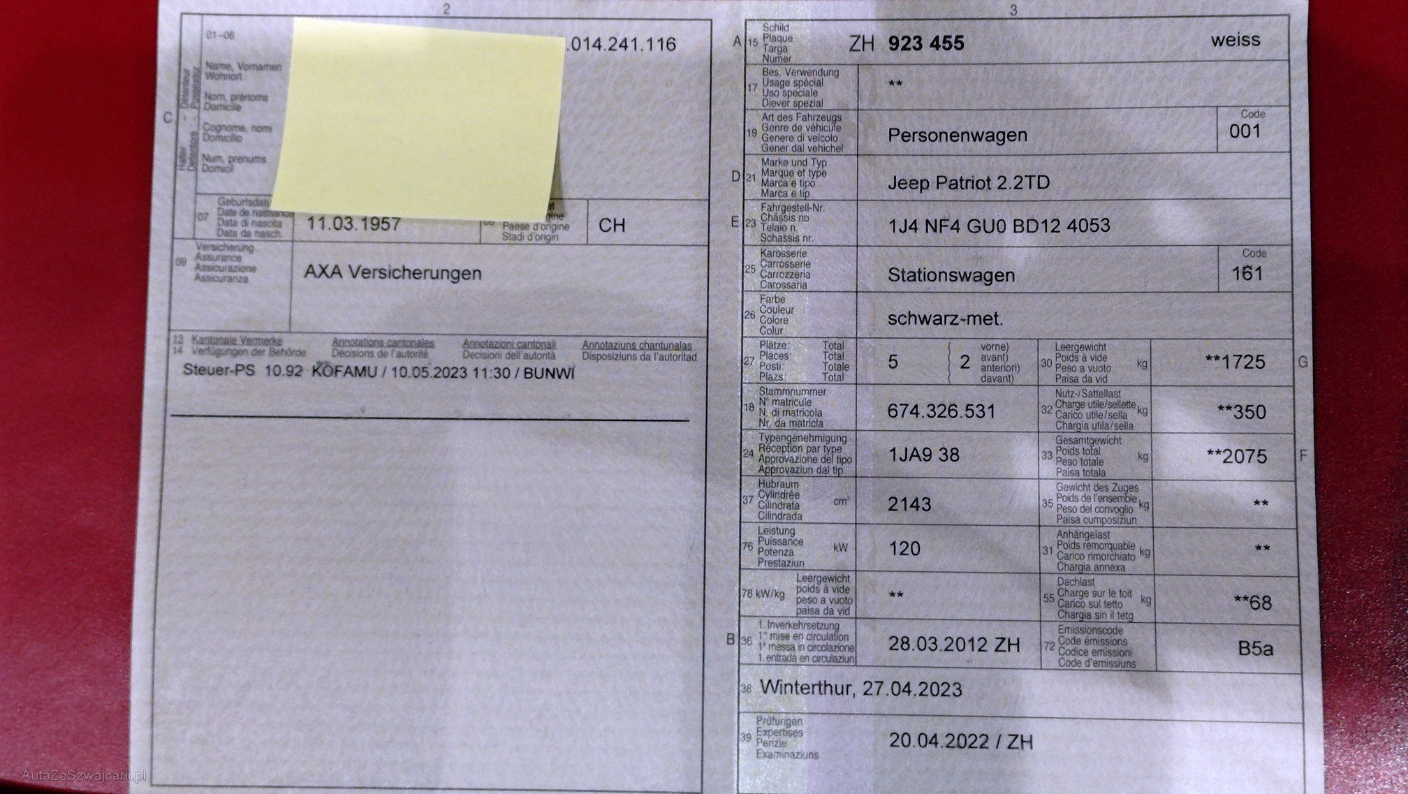 | Kommentar | - diverse "Kampfspuren" siehe Fotos - Liste an Kofferraum gebrochen + Schrauben fixiert + Parksensoren hinten + neue Radlager hinten, KM .06.24 + neue Lamda-Sonde, KM .06.24 + neue Bremsscheiben + Klötze vorne, KM .03.24 + neue Bremsscheiben + Klötze hinten, KM .04.22 + Viscokupplung hinten ersetzt, KM .03.21 keine vollständige Prüfung, kein Werkstatt-Test ABHOLUNG NACH ZUSCHLAG / VERFÜGBARKEITS-DATUM INNERT 7 TAGEN ERFORDERLICH, DANACH FR. 15.-/TAG STANDPLATZ-GEBÜHREN BARZAHLUNG BEI ABHOLUNG / MONTAG-FREITAG 08:00-12:00 UND 13:30-17:00 IM KUNDENAUFTRAG ZU VERKAUFEN, KEINE MWST VORSTEUER AUSWEISBAR. |