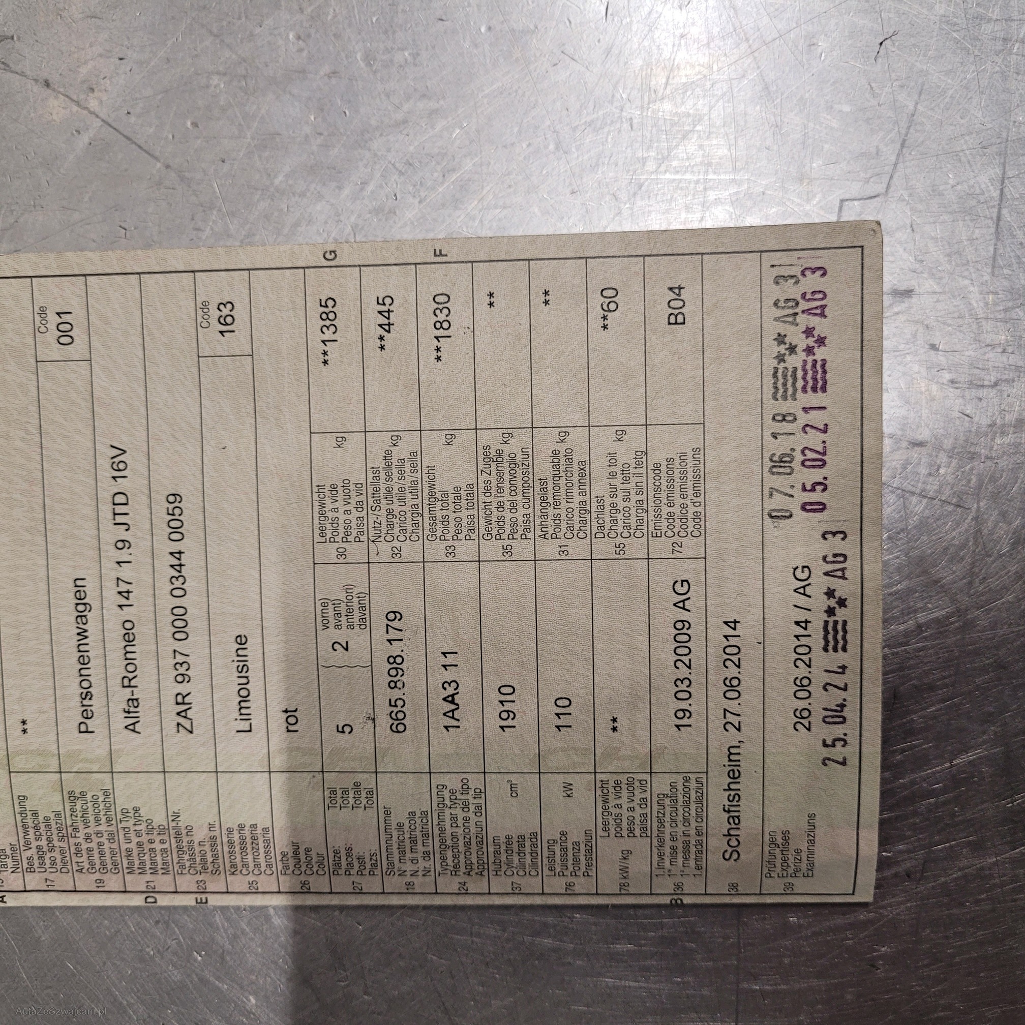 | Kommentar | Div. keine Lackschäden, Lenkrad Leder def. Zahnriemen und Wasserpume wurde ersetzt, Fahrzeug startet schlecht, wenn er läuft im Leerlauf normal hat aber fast keine Beschleunigung. Es wurden keine weiteren Werkstatttests durchgeführt. Jede Gewährleistung, soweit nach Gesetz möglich , wird wegbedungen. Insbesondere sind Wandelung und Minderung ausgeschlossen. |