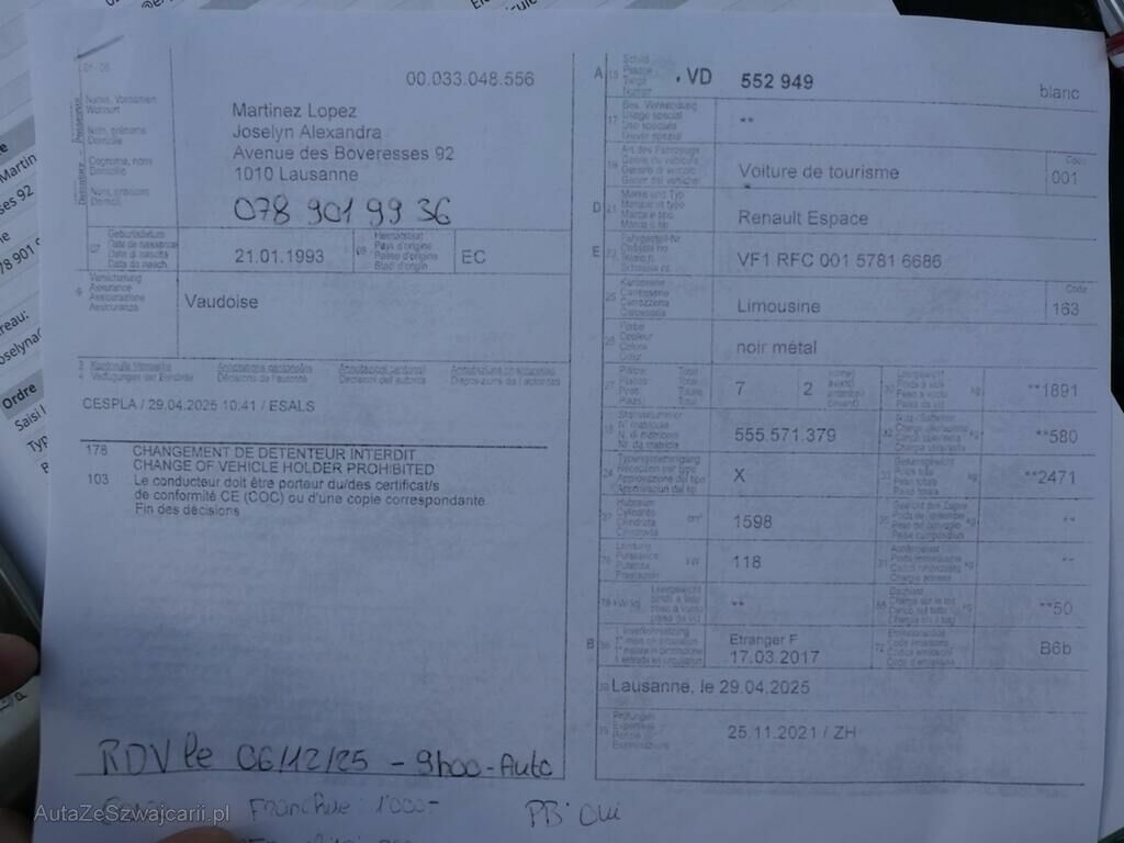 | Information | Divers dommages sur tout le tour du véhicule Véhicule vendu avec une seule clef Sous réserve de contrôles et démontages Aucune garantie moteur & mécanique Réserve châssis & train avant et arrière ATTENTION => pneus lisse sur le flanc (4x), Dommages préexistant multiples sur le véhicule, lunette arrière cassée |