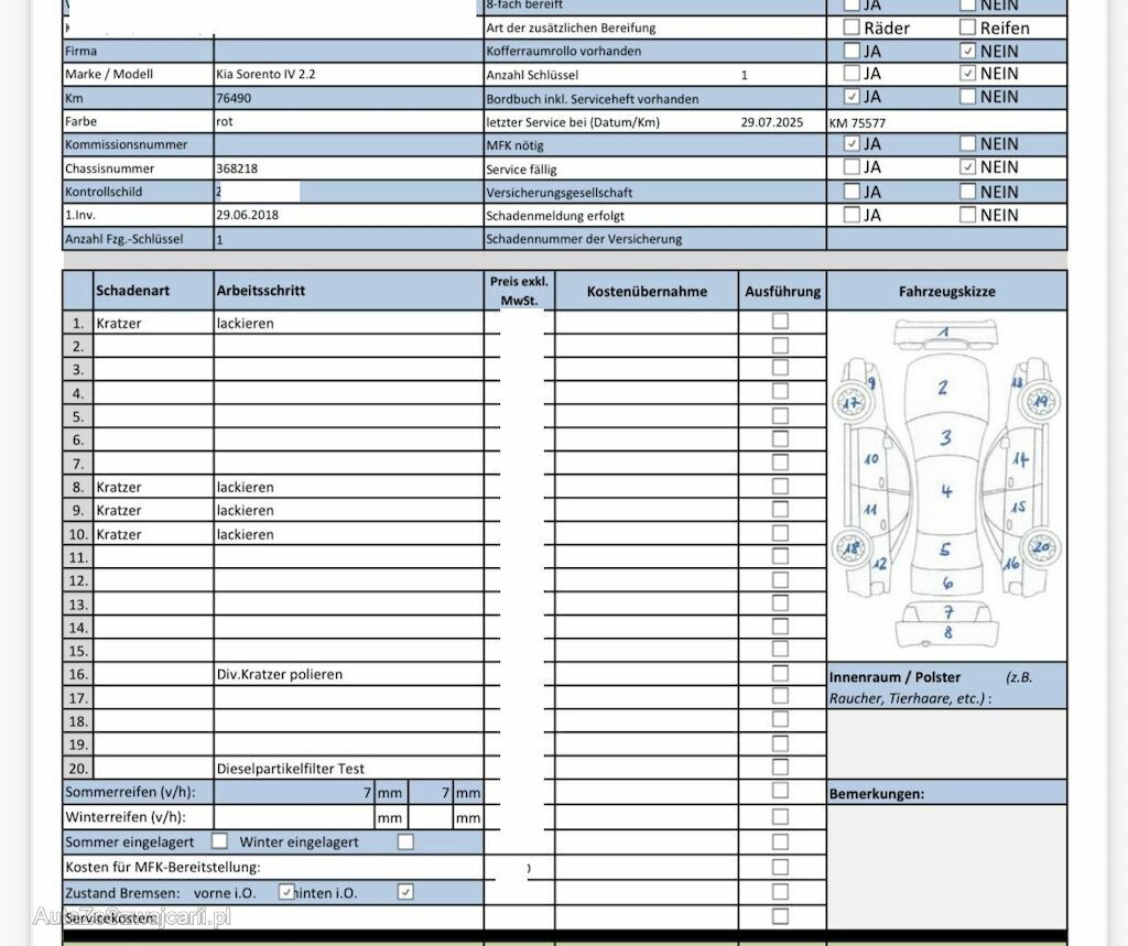 | Information | Keine Gewähr auf die Angaben der Sonder- und Serienausstattung / keine mechanische Prüfung. Fahrzeug wurde unzerlegt expertisiert / keine Haftung für allfällige, nach Demontage bekanntwerdenden Mängel. Fahrzeugbereifung und Ausstattung gemäss Fotos / Fahrzeugkauf auf eigenes Risiko ab Platz ohne Nachwährschaft. - Div. Kratzer und Dellen am gesamten Fahrzeug. - Div. Kratzer an den Felgen. - Letzter Serviceeintrag 23.07.2025 bei 75'577 km |