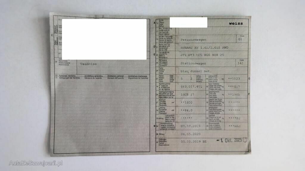 | Typ | XV 1.6i AWD |