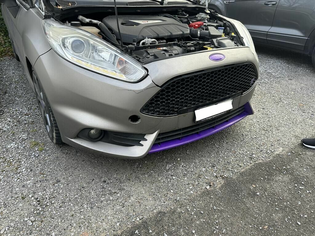 Ganze Frontpartie zurückgestossen, Frontrahmen gebrochen, Haube verklemmt