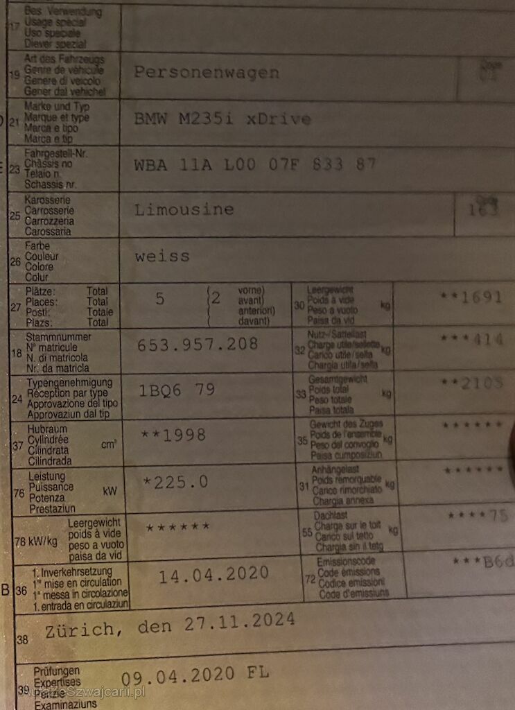 | Information | eine Gewähr auf die Angaben der Sonder- und Serienausstattung / keine mechanische Prüfung. Fahrzeug wurde unzerlegt expertisiert / keine Haftung für allfällige, nach Demontage bekanntwerdenden Mängel. Fahrzeugbereifung und Ausstattung gemäss Fotos / Fahrzeugkauf auf eigenes Risiko ab Platz ohne Nachwährschaft. - Motorhaube 2 Steinschläge -zwei Felgen sind verkratzt - Letzter Service im April 2025 bei Emil Frey Volketswil Bmw -wird frisch ab MFK sein -wird mit den Originalen Spiegelkappen (auch Schwarz ohne ecken) geliefert |