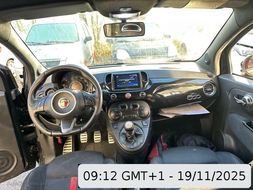 | Serienausstattung | Stossstangen und Aussenspiegel in Wagenfarbe, Tankdeckel abschliessbar, Servolenkung, ISOFIX Kindersitzvorrichtung, Blue&Me: Bluetooth, USB-/MP3-Anschluss, mit SMS Interpreter und Sprachsteuerung, Durchtauchschutz auf allen Sitzplätzen, Klimatisierungsautomatik, Beide Make up-Spiegel beleuchtet, Multifunktions-Sportlenkrad in Leder, Easy-Entry Lehnenentriegelung, Elektronisches Stabilitäts-Programm (ESP), Rücksitzlehne geteilt abklappbar, Kopfstützen hinten, Heckscheiben-Wisch-/Waschanlage, Licht: Drittes Bremslicht, Abgedunkelte Seiten- und Heckscheibe, Licht: Nebelscheinwerfer, Radio/CD-Player mit 6 LS und MP3, Tageskilometerzähler, Leichtmetallräder Abarth Sport zweifarbig mit 5 Speichen 17J, Zigarettenanzünder, Gurtstraffer vorne, Berganfahrhilfe (Hill Holder), Assist: Antriebsschlupfregelung (ASR), Assist: Bremsassistent (BAS), Türgriffe aussen verchromt, Wegfahrsperre elektronisch, Licht: Tagfahrlicht, Pollenfilter (Staubfilter), Lenkrad: Lenkrad höhenverstellbar, Licht: Nebelschlussleuchte, Getriebe: 5-Gang-Getriebe, Antiblockiersystem (ABS), Scheibenwischer vorne mit Intervall, Aussenspiegel rechts und links beheizbar und elektrisch verstellbar, Drehzahlmesser, Getönte Scheiben, Stoff-Ausstattung, Notbremslicht (EBS), Aussentemperaturanzeige, Airbag: Knie-Airbag für Fahrer, Rote Bremszangen (v//h), Heckscheibenheizung, Reifenreparatur-Set (Tire Fit), Sitze: Fahrersitz höhenverstellbar, Abblendlichtausschaltverzögerung 'Follow me home', Elektrische Fensterheber vorne, Airbag: Window-Kopfairbags, Katalysator geregelt, HiFi-Sound System mit Verstärker und Subwoofer, Pedalerie mit Aluminiumauflage, Bordcomputer, Sportsitze vorne, Airbag: Airbag Fahrer und Beifahrer inkl. Seitenairbags, Dachspoiler, Zentralverriegelung mit Fernbedienung |