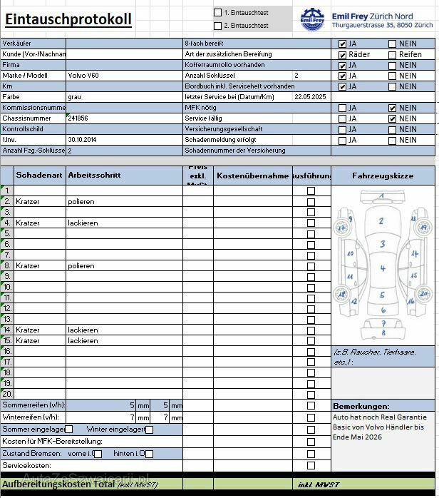 | Information | Keine Gewähr auf die Angaben der Sonder- und Serienausstattung / keine mechanische Prüfung. Fahrzeug wurde unzerlegt expertisiert / keine Haftung für allfällige, nach Demontage bekanntwerdenden Mängel. Fahrzeugbereifung und Ausstattung gemäss Fotos / Fahrzeugkauf auf eigenes Risiko ab Platz ohne Nachwährschaft. DPF/FAP Filter nicht kontrolliert. Keine technische Prüfung (Werkstatttest) vorgenommen. Fahrzeug ab Platz, ohne Garantie und Aufbereitung. - Diverse kleine Kratzer am Fahrzeug - 8 Fach bereit mit Komplettrad - Letzter Service 22.05.20205 bei 136'398km - Letzte MFK 03.06.2025 |