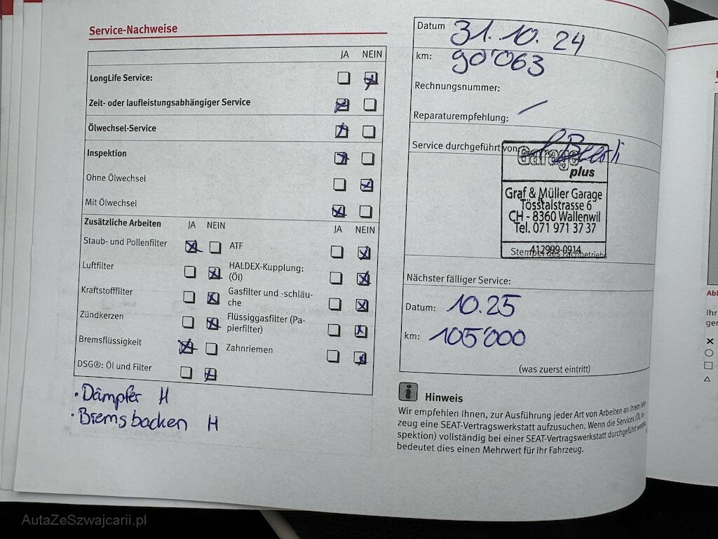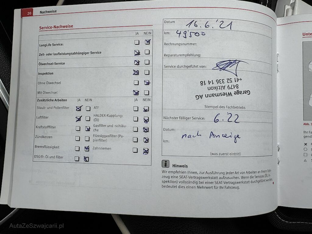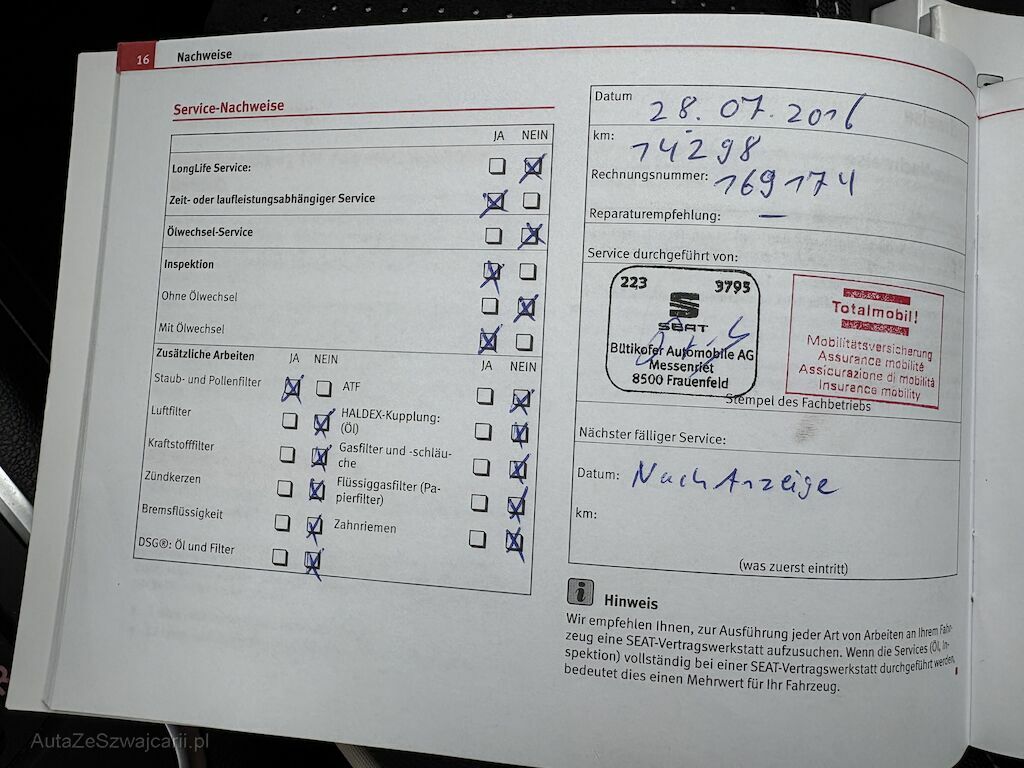 Keine technische Prüfung (Werkstatttest) vorgenommen