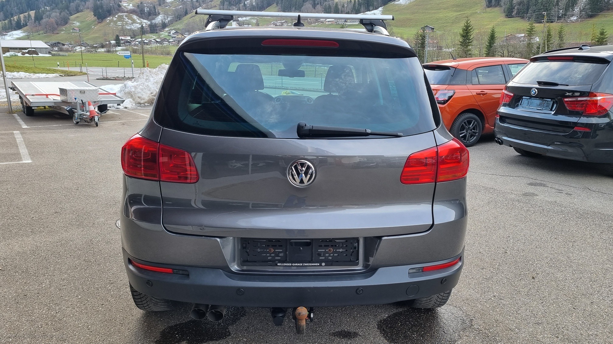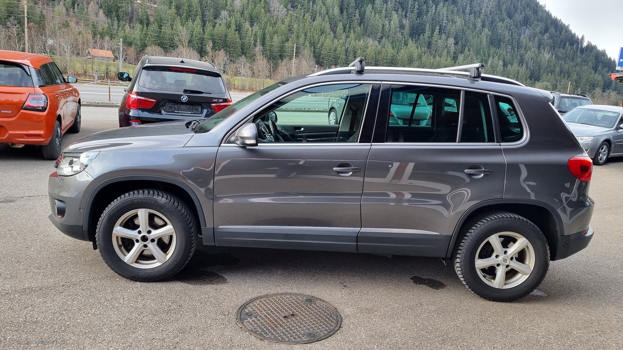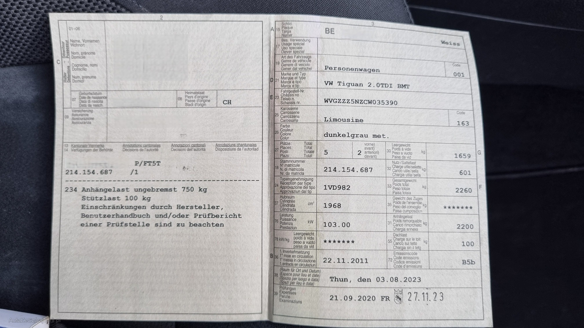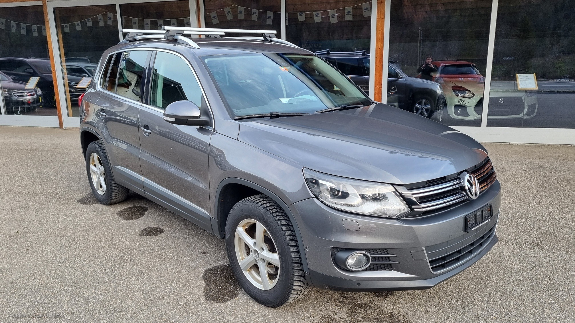 | Kommentar | Der Tiguan fährt sich schön und ruhig. Um 10'000.- investiert in den letzten 5 Jahren. Diverse kleiner Dellen und Kratzer gemäss Detailfotos. - Scheinwerfer rechts nass - Winterreifen hinten Innenseite flach - Spur oder Sturzproblem! - Bremsen vorne zu ersetzen - Beide Nabendeckel bei den Winterrädern fehlen - Leichter Fettaustritt bei der Antriebswellenmanschette vorne links - Motor ist an diverse Stellen Ölig - Ölverlust um Verteilergetriebe - Hardyscheibe defekt Fahrzeug wurde nicht abschliessend geprüft Keine Nachverhandlung bei Zuschlag Wandelung oder Minderung ausgeschlossen |