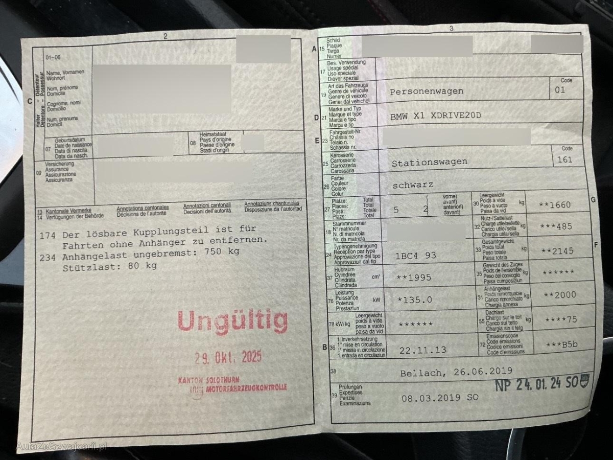 | Fahrzeugausweis | Vorhanden |