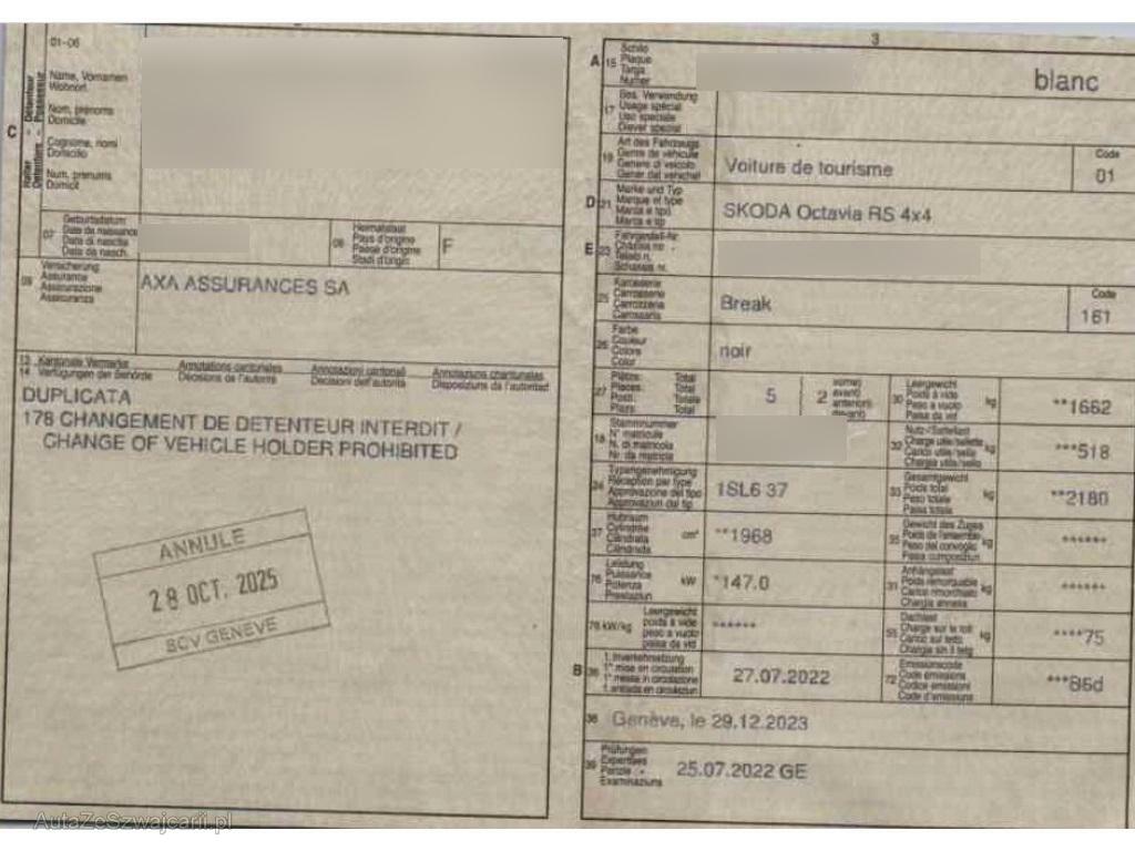 | Fahrzeugausweis | Vorhanden |