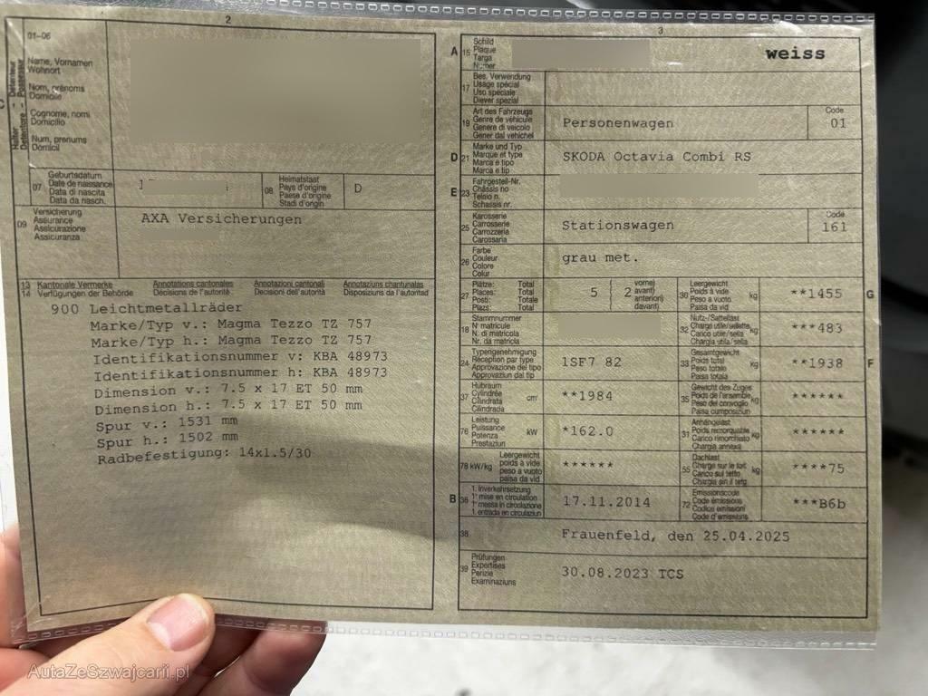 | Fahrzeugausweis | Vorhanden |
