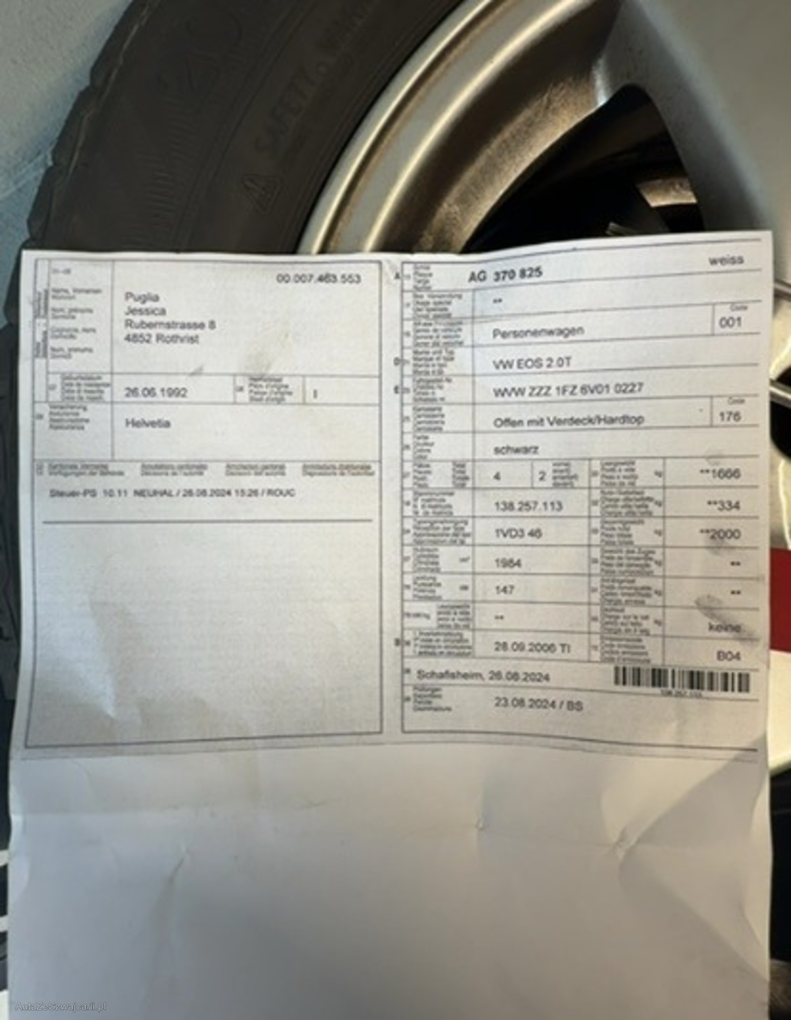 | VIN | WVW ZZZ 1FZ 6V01 0227 |