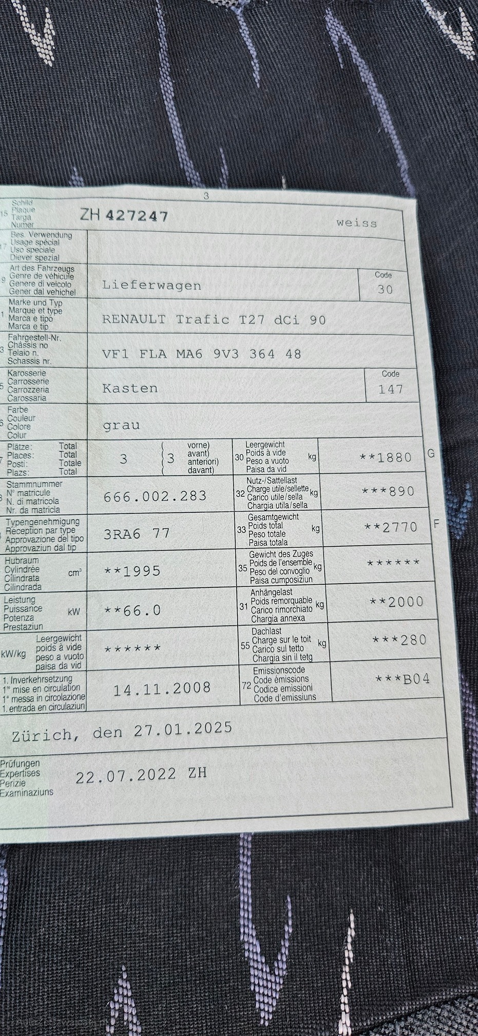 | Kommentar | Kein Werkstatt Test durchgeführt Ab Platz ohne Gewähr Zündschloss klemmt muss manuell zurückgedreht werden. FAHRZEUG MUSS BIS 20.12.25 ABGEHOLT WERDEN |