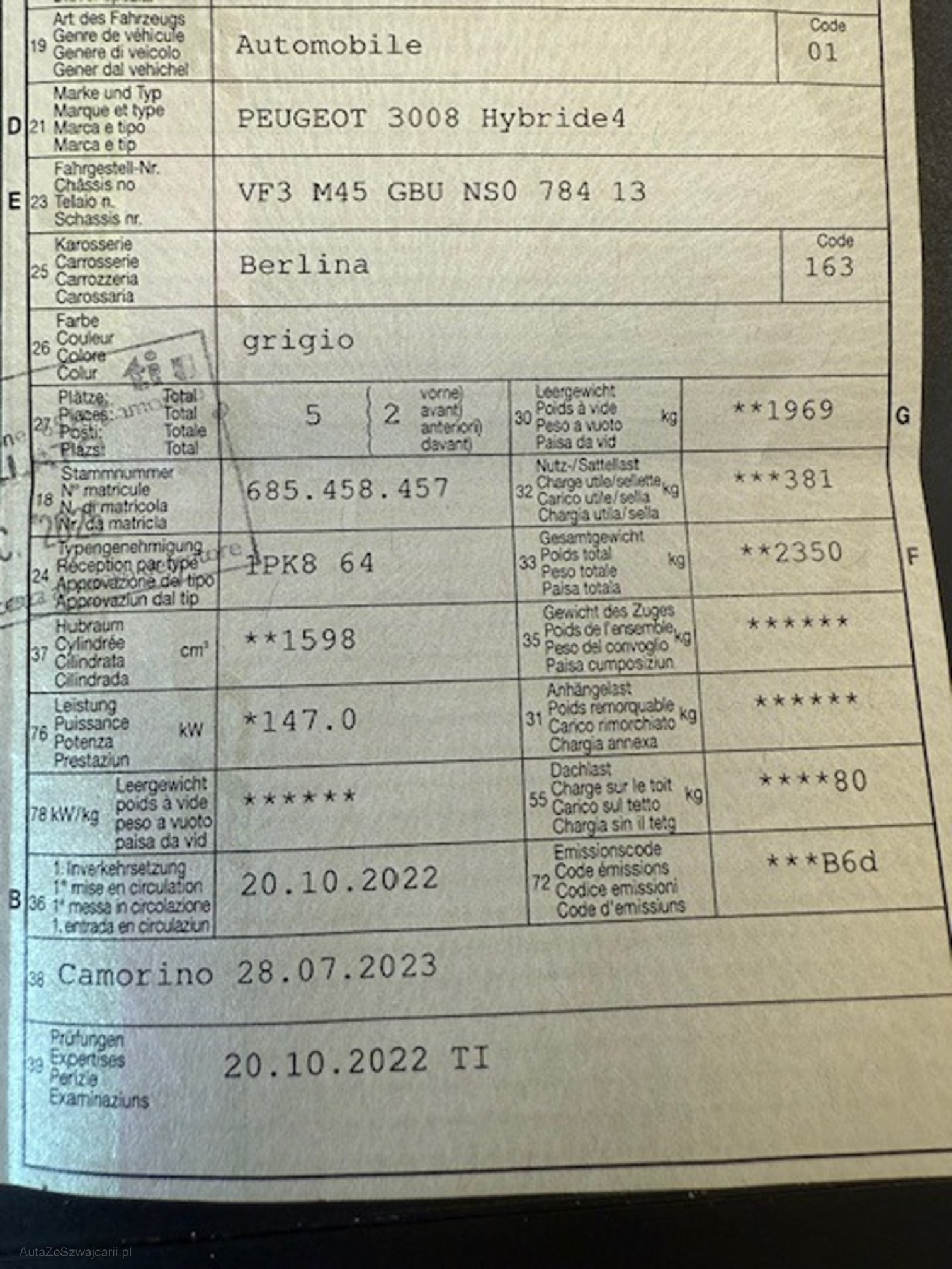 | Kommentar | CH-Auslieferung inkl. 4 Winterkompletträder schwarz lackiert! 4 Sommerräder leicht angefahren (siehe Bild), Kratzer Türe/Seitenwand hi li. (siehe Bild) |