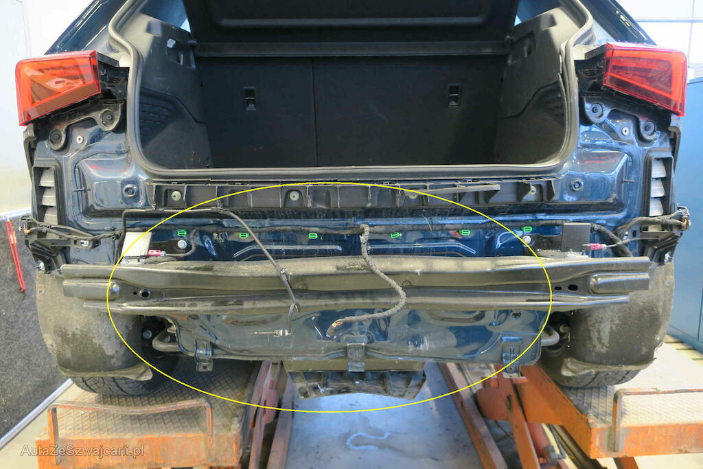 Heck, Stossfänger, Balken, Heckblech, Kofferraumboden, Hochvolt Ladegrät, Halter und Stabilisator hinten beschädigt.