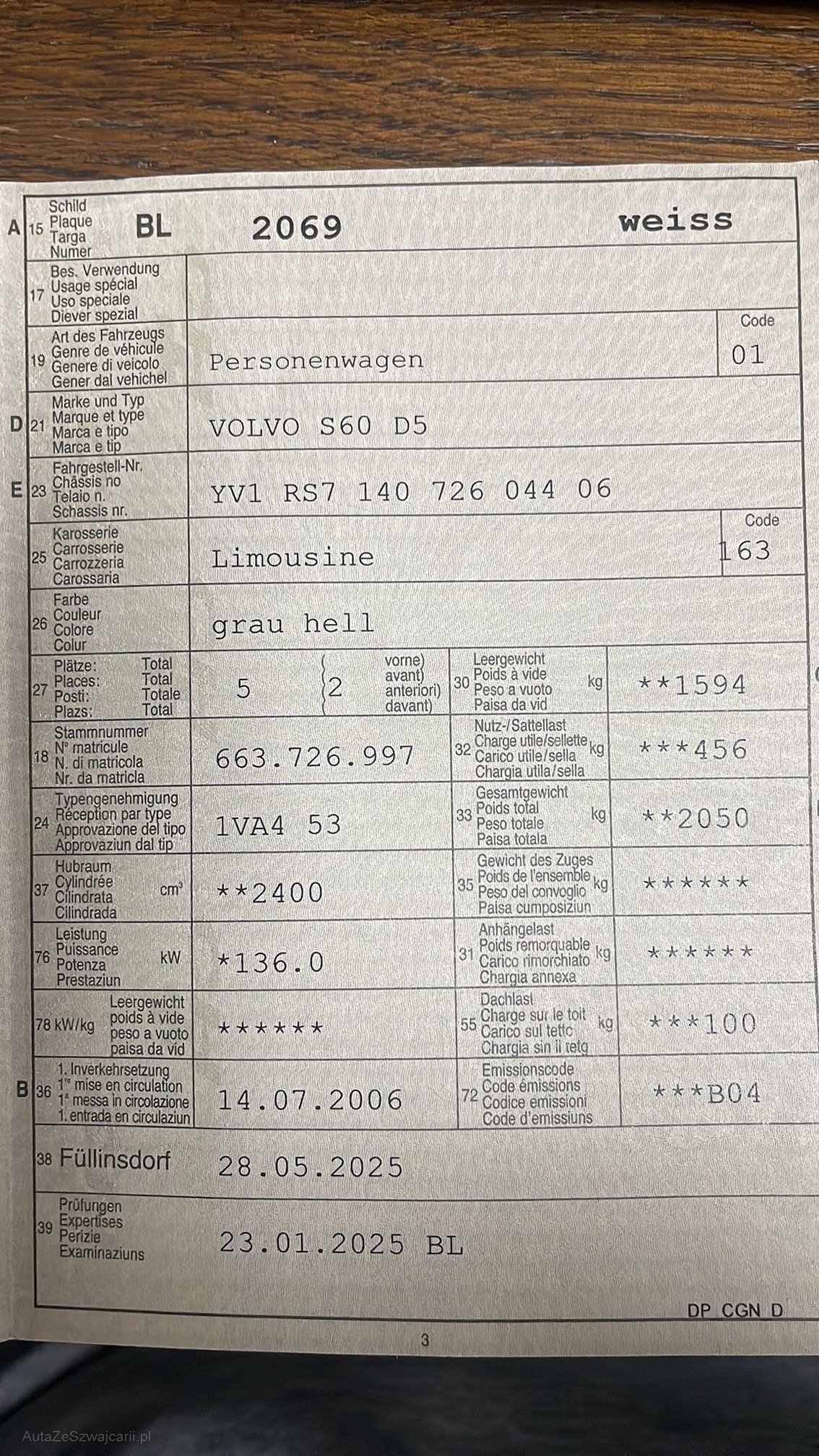 | VIN | YV1RS714072604406 |