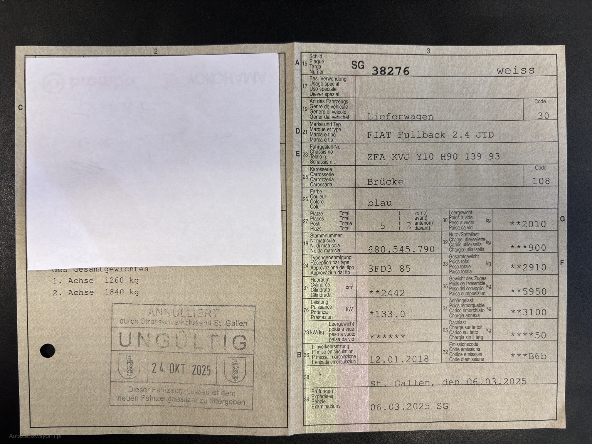 | Kommentar | Am Fahrzeug wurde kein Werkstatttest gemacht (Für sichtbare oder nicht sichtbare Mängel wird nicht gehaftet). Wir testen & kontrollieren nicht alle Funktionen des Fahrzeugs. Das Risiko liegt somit vollumfänglich beim Käufer. Ab Platz ohne Garantie, Wandelung und Minderung werden wegbedungen Starker gerbrauch der Ladefläche, Zustand wie auf Fotos ersichtlich. Fahrzeug hat diverse Beulen und Kratzer |