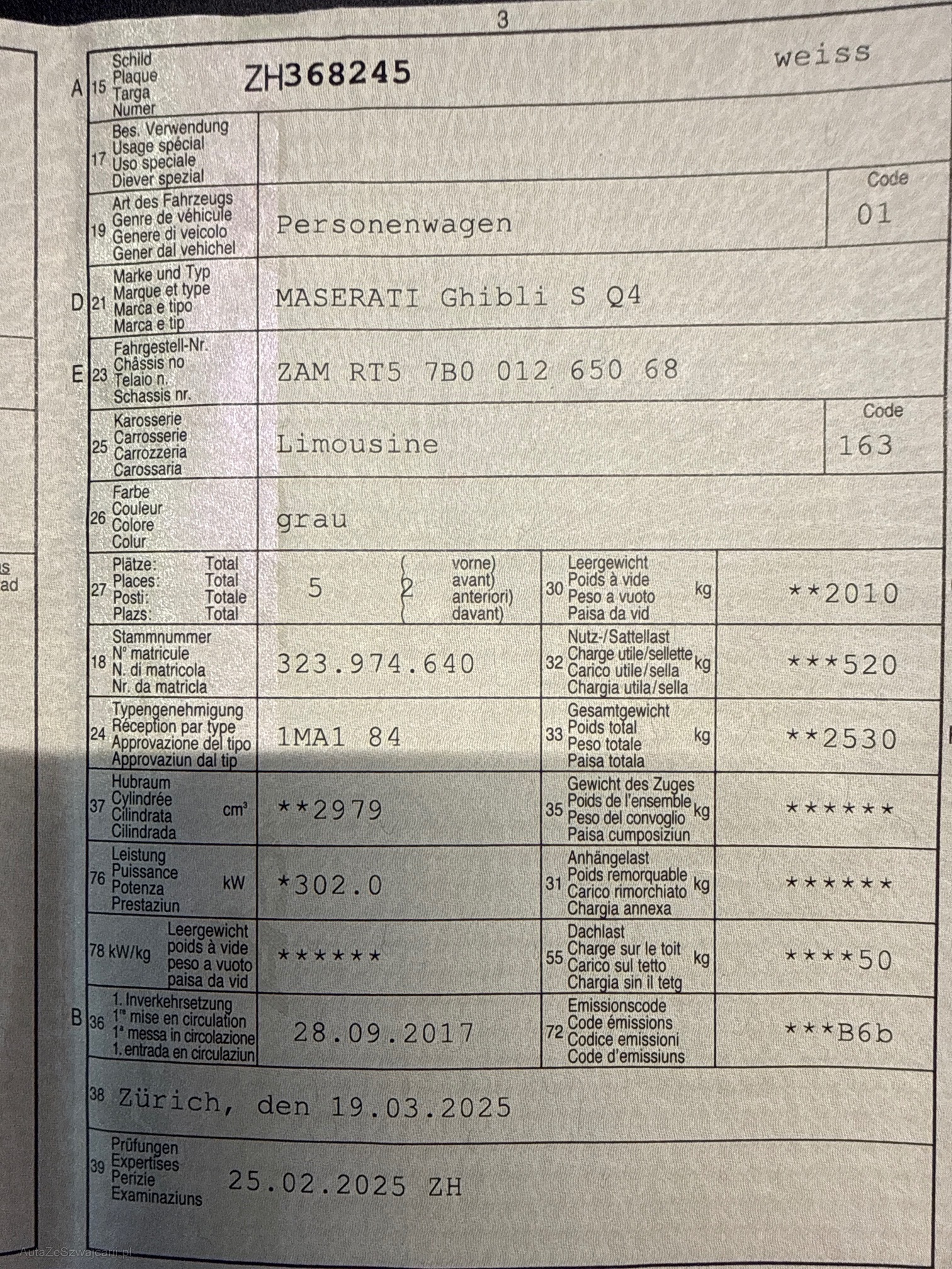 | Kommentar | Ab Platz, kein Technischer Test durchgeführt. Ohne Garantie, Stossstange hat Kratzer und Dellen. Ohne Nachverhandlung. |