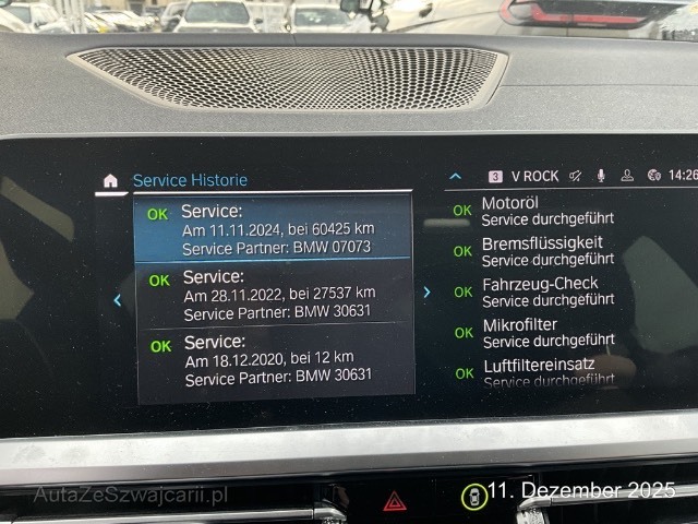 | Serienausstattung | Licht: LED Scheinwerfer, M Aerodynamicpaket - Nierenrahmen in Chrom hochglanz mit Nierenstäben in Schwarz hochglänzend - Aerodynamik-Komponenten in Wagenfarbe bestehend aus Verkleidung Stossfänger vorn und hinten sowie Seitenschwellern - Einsatz Verkleidung Stossfänger hinten in Dark Shadow metallic, Paket: Connected Package Professional, Media: ConnectedDrive Services - Beinhaltet die kostenlose Nutzung von Fahrzeug Apps über BMW Online (inkl. Zugriff auf Wetterinformationen, Nachrichten, Adresssuche etc.) für 3 Jahre - Registrierung erforderlich für personalisierbare Dienste - Der Dienst BMW Online ist ab 2 Wochen vor Ablaufdatum via BMW ConnectedDrive Store kostenpflichtig verlängerbar, Elektronische Wegfahrsperre, Lenksäulenverstellung, Check-Control, Leuchtweitenregulierung, Licht: Heimleuchten, Durchladesystem, BMW Garantie: 3 Jahre oder 100'000 km Gratis-Service: 10 Jahre oder 100'000 km (ab 1. Inv.), Armauflage, BMW Individual Dachreling Hochglanz Shadow Line, Licht: LED Nebelscheinwerfer, Fahrwerk: Variable Sportlenkung - Erhöhte Sportlichkeit ohne Schwächung der Alltagstauglichkeit (durch entsprechende Lenkübersetzung und Lenkungsabstimmung) - Sportliches, direktes Einlenken durch geringeren Lenkwinkelbedarf - Leichtgängiges Einlenken bei langsamer Fahrt wie Einparken oder Abbiegen - Intuitives, leichtes Fahrverhalten bis in den Grenzbereich - Deutliche Differenzierung zwischen Komfort und Sport Sport: höhere Lenkkräfte, weniger Dämpfung Komfort: geringere Lenkkräfte, höhere Dämpfung, Assist: Park Distance Control vorne und hinten, BMW Individual Dachhimmel Anthrazit, Sitze: Sportsitze für Fahrer und Beifahrer Höhere Sitzwangen, elektrische Lehnenwangenverstellung und manuell einstellbare Oberschenkelauflage, Beleuchtete Bügeltürgriffe vorn und hinten, Scheibenwischer mit integrierten Waschdüsen, Fahrwerk: M Sportfahrwerk - Straffere Feder-/Dämpferauslegung mit Fahrzeugtieferlegung um 10 mm - Noch direktere Fahrwerksauslegung welche eine sportliche Fahrweise begünstigt, Auto Start Stop Funktion, Media: DAB+ Tuner, Schliessystem mit Zentralverriegelung, Licht: Tagfahrlicht, Räder: 18" M Leichtmetallräder Doppelspeiche 790 M Bicolor Orbitgrau metallic, glanzgedreht, mit Mischbereifung Vorn: 7,5 J×18/Bereifung 225/45 R 18 Hinten: 8,5 J×18/Bereifung 255/40 R 18, Endrohrblenden, sichtbar, Condition Based Service, Active Guard Plus - Spurverlassenswarnung mit aktiver Rückführung (ab ca. 70 km/h) - Auffahr- und Personenwarnung mit City-Bremsfunktion - Speed Limit Info mit manuellem Speed Limit Assist, Assist: Frontkollisionswarnung mit Bremseingriff, Kindersitzbefestigung ISOFIX, Ambientes Licht - Mit Ambiente-Lichtdesigns - Umfasst 11 vordefinierte wählbare Lichtdesigns in 6 Farben (Orange, Grün, Blau, Flieder, Bronze und Weiss) - Zusätzlich inszeniert der Lichtteppich im Ein- und Ausstiegsbereich links und rechts durch Lichtprojektion eine ambiente Lichtgrafik, Licht: 3. Bremsleuchte, Innenspiegel, automatisch abblendend Abblendsteuerung mittels eingebauter Sensorik, die das von hinten einfallende Licht misst und bei berechneter Blendung den Innenspiegel entsprechend abblendet, BMW Mobiler Service - Hilfe im Pannenfall, Media: BMW Live Cockpit Plus, Klima: Klimaautomatik - 3-Zonen-Klimaautomatik mit erweiterten Umfängen - Beschlag- und Solarsensor - Aktivkohlefilter für Frisch- und Umluft - Standlüftung mit Timer und Direktbetrieb - Digitales Display Mittelkonsole hinten, Media: Lautsprechersystem Stereo, Media: USB-Anschluss, Parkbremse, elektromechanisch, Assist: Geschwindigkeitsregelung mit Bremsfunktion, Türen: Automatische Heckklappenbetätigung - Fernöffnen mit Schlüssel, Schliessen über Heckklappentaster und Schlüssel, Polster: Alcantara-/Sensatec-Kombination, Fahrwerk: xDrive, Media: Freisprecheinrichtung mit USB-Schnittstelle, Räder: Radschraubensicherung, Verzurrösen, Regensensor für Scheibenwischer vorne, Seitenaufprallschutz, Licht: Begrüssungslicht, Fondkopfstützen, klappbar, Wärme-/Sonnenschutzverglasung, Ablagemöglichkeiten, Airbag: Kopfairbags für alle 4 äusseren Sitzplätze, BMW Live Cockpit, Gepäckraumtrennnetz, Assist: Dynamische Traktionskontrolle (DTC), Sonnenblenden, BMW Niere mit 8 Gitterstäben je Segment, Schwarz hochglänzend und Rahmen in Chrom hochglänzend, Dekor: Interieurleisten Aluminium Tetragon mit Akzentleiste Perlglanz Chrom, Dynamische Stabilitätskontrolle (DSC), Fahrerlebnisschalter, BMW Individual Hochglanz Shadow Line Ausführung in Schwarz hochglänzend: - Blende Spiegeldreieck - Spiegelschwert, -fuss und -brille - B-Säule und Fensterführungsstege - Fensterschachtabdeckung - Fensterumrandung, Licht: Heckleuchten in LED-Technik, Personal Profile, BMW Teleservices, Paket: Ablagenpaket Im Interieur: - Klappfach Instrumententafel Fahrerseite - Mittelkonsole, hinten: eine Doppel-USB-Buchse (nur Laden: Typ C/3,0 A) - Fahrer- und Beifahrersitz: Netze an Sitzlehnerückseite, jeweils in Farbe der Sitzblende Im Gepäckraum: - Netz, schwarz, mit Rahmen, links, rechts - Multifunktionshaken, Airbag: Airbag Fahrer und Beifahrer, Assist: Crash-Sensor, 230V-Ladekabel für Haushaltssteckdose, Warndreieck, Fussmatten in Velours, Airbag: Airbag Beifahrer deaktivierbar, Lenkrad: Multifunktion für Lenkrad, Antiblockiersystem (ABS), Gepäckraumleuchte, Mittelkonsole, hinten, Assist: Akustischer Fussgängerschutz, Lenkrad: M Lederlenkrad, Elektrische Fensterheber, Intelligenter Notruf, iDrive Controller, Ölsensor für Niveau und Qualität, Innenbeleuchtung, Getränkehalter, AC Schnell Ladekabel max. 32 A, 3-phasig, 5 m, beidseitig Typ 2 Stecker, Airbag: Seitenairbag für Fahrer und Beifahrer, Getriebe: Steptronic Sport Getriebe, 8-Gang Automatik, Servotronic, Steckdose 12V, Räder: Reifendruck-Kontrollanzeige, M Sportbremsen Blau lackierte Bremssättel mit M-Schriftzug, Einstiegsleisten, Räder: Reifen Pannen Anzeige |