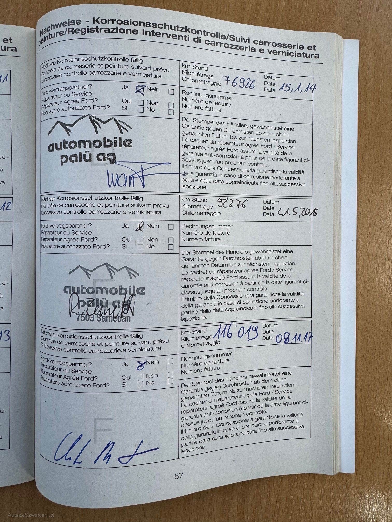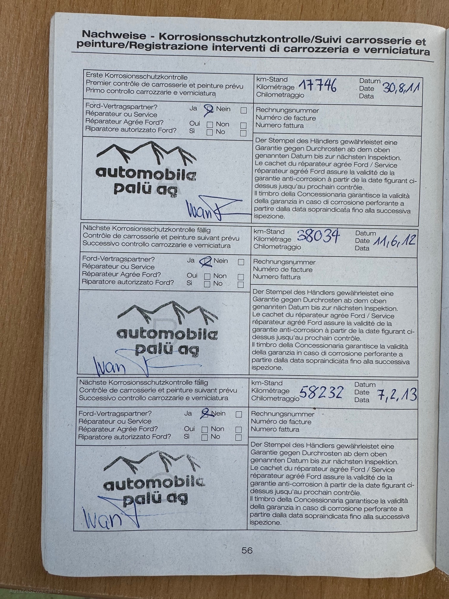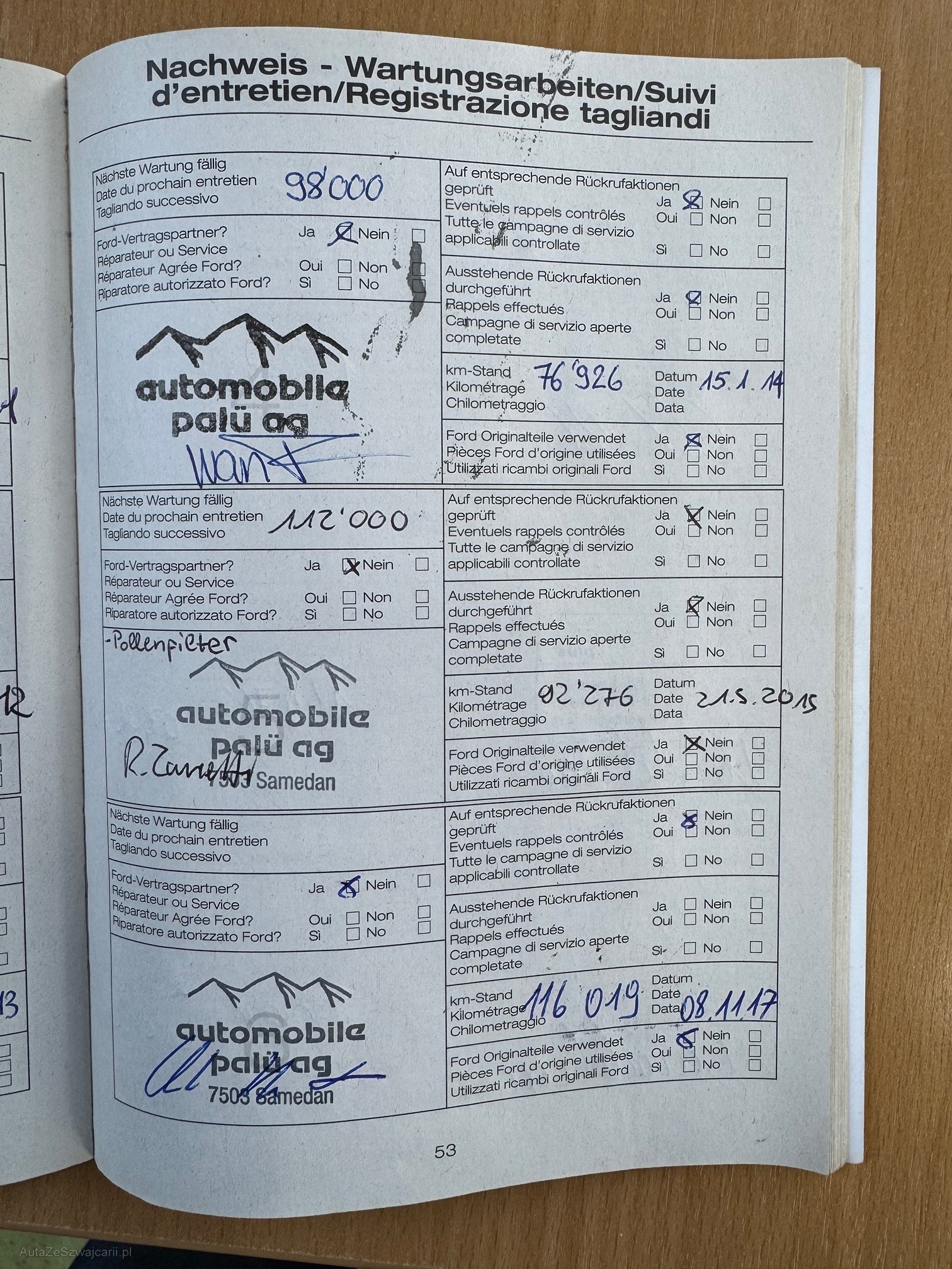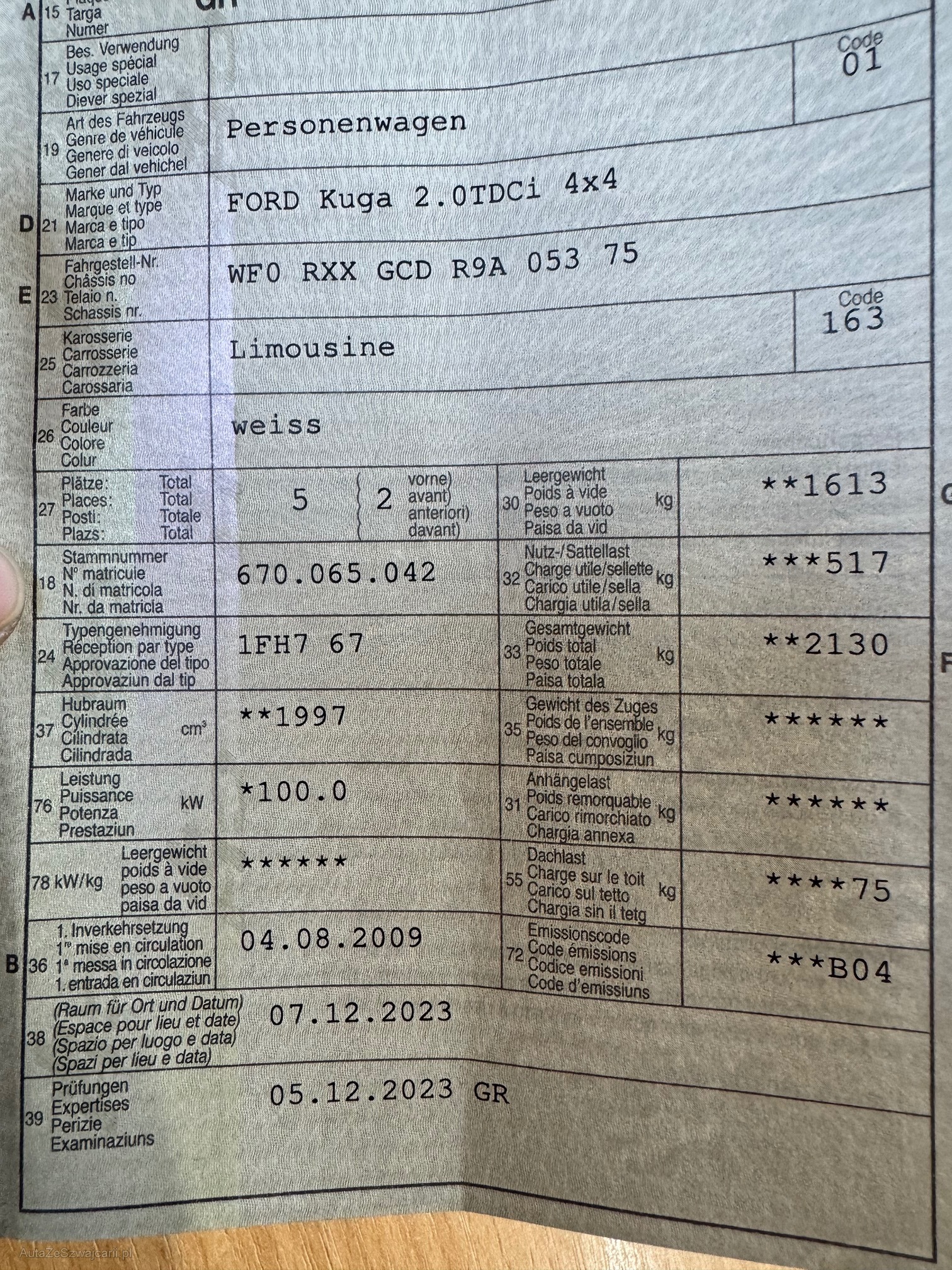 | Kommentar | Letzte MFK am 05.12.2023 Letzter Service am 06.07.2023 bei 170'055Km Zahnriemen + Wasserpumpe ersetzt am 19.12.2023 bei 173'000Km Winterreifen mit ca. 7mm Profiltiefe Bekannte Mängel: - Diverse Gebrauchsspuren, Dellen und Kratzer (siehe Fotos) - Fahrersitz beschädigt (siehe Fotos) - Raucherfahrzeug - Gemäss Kundenaussage sei die Motorstöhrung schon lange, falle jedoch beim fahren nicht auf. (wurde nicht weiter untersucht) Kein Werkstatttest und keine Probefahrt durchgeführt! Jede Gewährleistung, soweit nach Gesetz möglich, wird wegbedungen. Insbesondere sind Wandelung und Minderung ausgeschlossen. Nach der Zusage muss das Fahrzeug innerhalb von 5 Arbeitstagen abgeholt werden, ansonsten werden Standgebühren in Höhe von CHF 50.- pro Tag in Rechnung gestellt. |