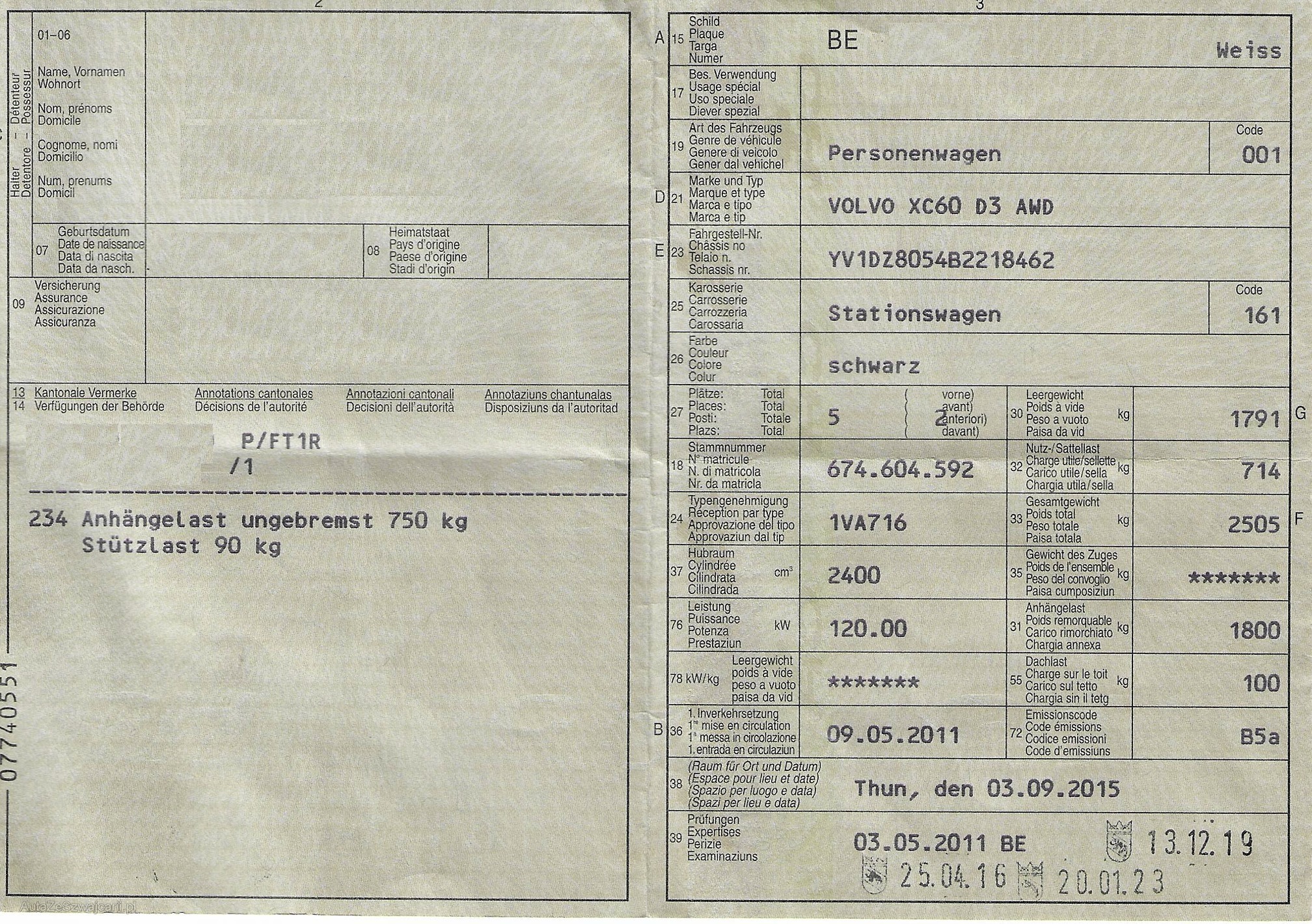 | Kommentar | Dem alter entsprechend gepflegtes Fahrzeug. Services wurden immer bei Volvo durchgeführt. Fahrzeug wurde keinem genauen Test unterzogen. Wir lehnen jegliche Haftung ab. |