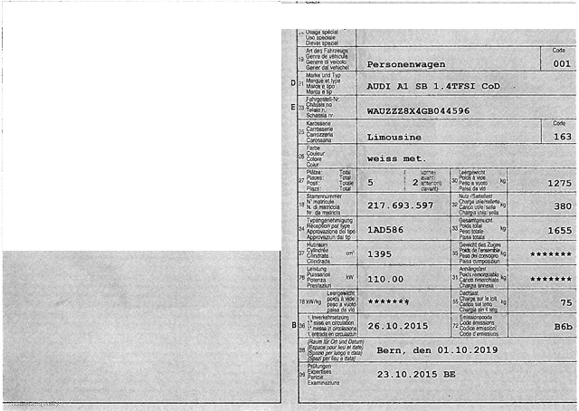 | Kommentar | 2 Winterpneus sind zu ersetzen. 2 Sommerpneus sind zu ersetzen. Frontscheibe hat Steinschlag. Hutablage fehlt. Unsere Fahrzeuge wurden keiner Prüfung unterzogen, Fahrzeugkauf auf eigenes Risiko ab Platz ohne Nachwährschaft. Das Gewährleisten für Sachmängel wird weggegangen. Fahrzeugbereifung, Fahrzeugzustand und Ausstattung gemäss Bildern. |