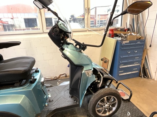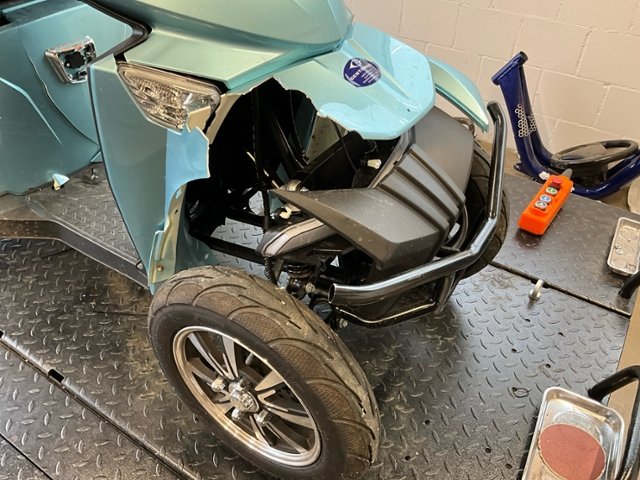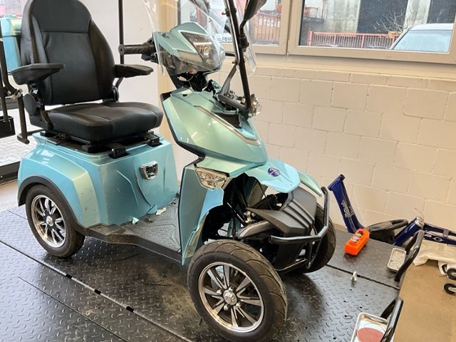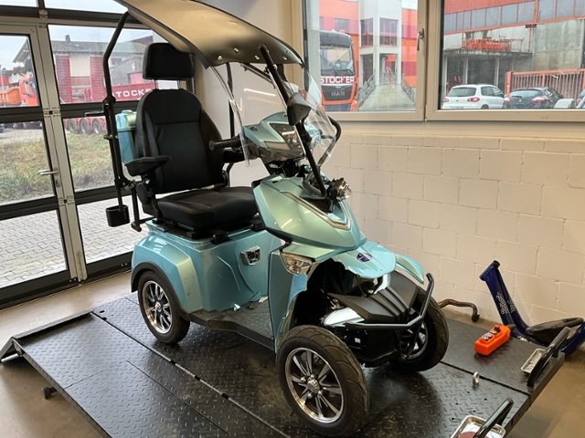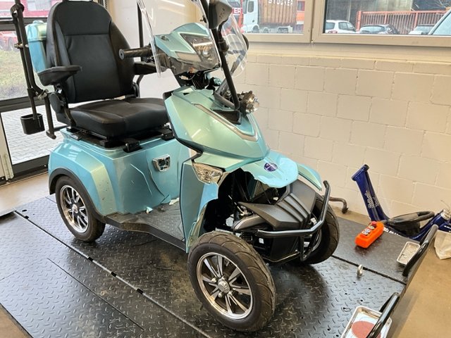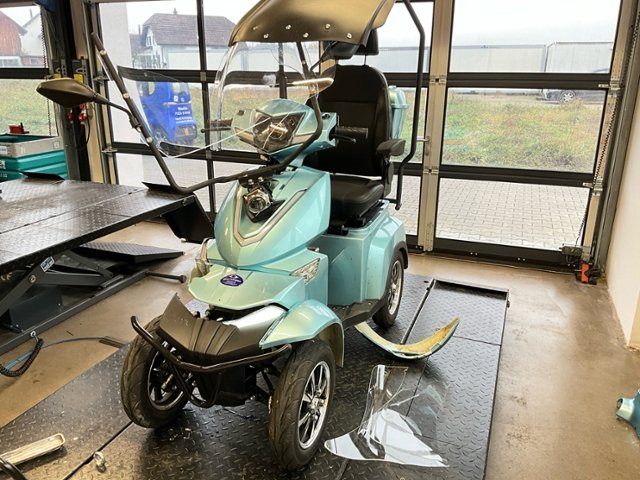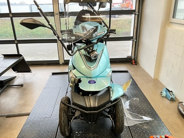 | Condition_and_Equipment | Zustand Fahrzeug muss transportiert werden (Höhe und Breite beachten). Zweirad-Kategorie Trendfahrzeuge / E-Scooter / E-Kickboard / E-Roller Hochvoltfahrzeug Zum Zeitpunkt der Prüfung ging von der Batterie keine Brandgefahr aus. Die geforderten Sicherheitsbestimmungen sind zwingend vom Käufer einzuhalten. Weitere wichtige Hinweise Ladekabel vorhanden --- Front Schutzblech vorne defekt. Vorderrad beschädigt. Gabel beschädigt. Lenker verbogen. Rahmen Rahmen verzogen/beschädigt. Glas Windschutzscheibe ist gerissen. Sonstige Schäden Div. Teile sind leicht beschädigt. --- Sonstige Ausstattung und Zubehör Stockhalter |