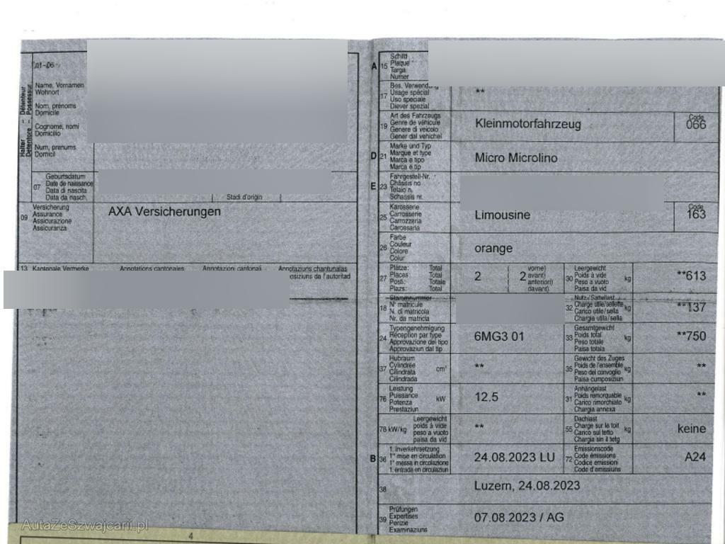 | Fahrzeugausweis | Vorhanden |