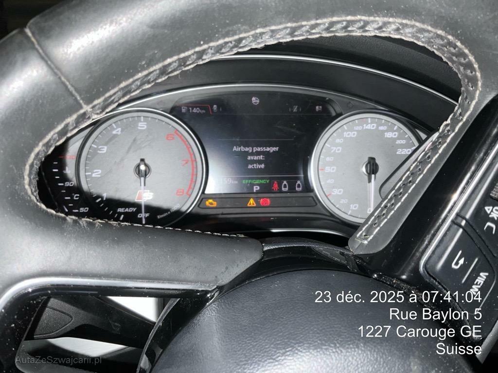 | Serienausstattung | Komforteinstieg, Pedalerie mit Aluminiumauflage, Leichtmetallräder im 5-Doppelspeichen - Design 18J, Airbag: Airbag Fahrer und Beifahrer, Sitze: Vordersitze höhenverstellbar, Digital Uhr, Scheibenwischer vorne mit Intervall, Diebstahlwarnanlage, Einstiegsleisten Carbon Camouflage matt, Antriebsschlupfregelung (ASR), Licht: Licht- und Regensensor, Komfortschlüssel, advanced key, Tempomat, Gurtstraffer vorne und hinten, Licht: LED Scheinwerfer, Wartungsintervall-Anzeige, Media: Bluetooth-Schnittstelle, Wegfahrsperre elektronisch, Antiblockiersystem (ABS), 3-Punkt-Sicherheitsgurte auf allen Plätzen, Vordersitze elektrisch verstellbar, Licht: Nebelschlussleuchte, Drehzahlmesser, Audi pre sense city, Aussentemperaturanzeige, S Sportfahrwerk, Start/Stop-Funktion, Bluetooth, USB-Anschluss und AUX-IN, Kindersicherung an den hinteren Türen, 3-Zonen-Klimatisierungsautomatik, Servolenkung geschwindigkeitsabhängig, Bremssättel schwarz lackiert, Komfortmittelarmlehne vorne, Assist: Bremsassistent (BAS), Seitenaufprall-Schutzsystem, Räder: Reifenreparatur-Set (Tire Fit), Höhenverstellbare Gurten vorne, Allradantrieb permanent, Kreuzstützen für Vordersitze verstellbar, Paket: Glanzpaket, Licht: Tagfahrlicht, Airbag: Window-Kopfairbags, Airbag: Airbag Beifahrer deaktivierbar, Media: Digitaler Radioempfang (DAB), Sitze: Sportsitze vorne, Knie-Airbag für Fahrer, Elektronisches Stabilitäts-Programm (ESP), Innenspiegel automatisch abblendbar, Elektrische Fensterheber vorne, LED Blinker im Aussenspiegel, Einstiegsschienen beleuchtet, Elektronische Parkbremse, ISOFIX Kindersitzvorrichtung, Sonnenblende zweifach, Modellbezeichnungen (Logo & Model), Getriebe: 8-Stufen-Automat sequentiell, Dachhimmel schwarz, Einstiegsschienen mit Logo, Wärmeschutzverglasung, Gepäckraumklappe elektrisch öffnend und schliessend, Lenkrad: Leder-Multifunktionslenkrad im 3-Speichen-Design, Media: MMI Radio plus, Assist: Einparkhilfe plus, Teppichfussmatten vorne und hinten, Kindersitzvorrichtung ISOFIX mit Deaktivierungsschalter für Beifahrer- Airbag, Leuchtweitenregulierung elektrisch, Audi drive select, Airbag: Seitenairbags vorne, Kopfstützen vorne höhenverstellbar, Elektronische Differentialsperre (EDS), Audi connect, Alcantara Frequenz-/Leder-Ausstattung, Lackierung: Uni-Lackierung, Lenkrad: Lenkrad längs- und höhenverstellbar, Wagenheber, Innenlicht-Abschaltverzögerung, Radwechselwerkzeug, Dekoreinlagen in Aluminium matt gebürstet, Parkhilfe hinten, Garantie: 2 Jahre ohne Kilometerbegrenzung (ab 1. Inv.), Komfortschlüssel inkl. Diebstahl- warnanlage, Aussenspiegel in Alu, Rücksitzlehne geteilt abklappbar, Media: 8 Lautsprecher, Mittelarmlehne vorne, mit aufklappbarem Staufach, zwei 12V Steckdosen, Fahrer-Informationssystem mit Farbdisplay, Räder: Reifendruck-Kontrollanzeige, Aschenbecher und Zigarettenanzünder, Seitenairbag für Fahrer und Beifahrer, Aussenspiegel rechts und links beheizbar und elektrisch verstellbar, Ablagen- und Gepäckraumpaket, Kopfstützen hinten, Katalysator geregelt, Leseleuchten vorne, Sitze: Vordersitze heizbar, Nebelscheinwerfer, Ablagen in den Türen, Klima: Pollenfilter (Staubfilter), Bremsenergie-Rückgewinnung |