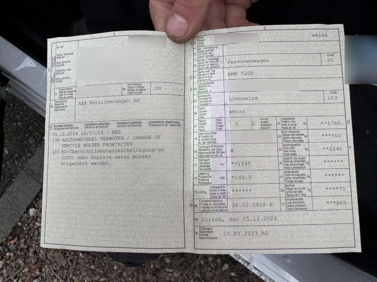 | Fahrzeugausweis | Vorhanden |
