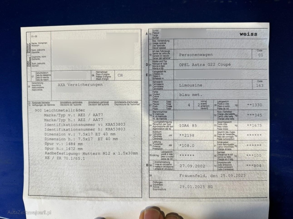 | Fahrzeugausweis | Vorhanden |
