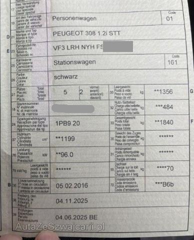 | Condition_and_Equipment | Zustand Fahrzeug ist fahrbar. Bereifung Fahrzeug wird mit Winterräder abgegeben. --- Links Linke Seite beschädigt. --- Serienaustattung Airbag Fahrer und Beifahrerseite Elektrische Fensterheber vorne Aussenspiegel elektrisch verstellbar und heizbar Seitenairbag Fahrer und Beifahrerseite ESP Elektronisches Stabilitätsprogramm Nebelscheinwerfer Zentralverriegelung mit Fernbedienung Höhenverstellbare Vordersitze Geteilte Rücksitzlehne 1/3, 2/3 Lederlenkrad Lenkrad verstellbar Kopfairbag vorne und hinten Elektrische Fensterheber hinten ABS und EBV Elektr. Bremskraftverteilung Deaktivierung Beifahrerairbag Aussenspiegel elektrisch anklappbar Lendenwirbelstütze Fahrersitz Pack Visibilité Zwei Zonen-Klimaautomatik Mittelarmlehne vorne mit Staufach Tempomat mit Geschwindigkeitsbegrenzer Servolenkung geschwindigkeitsabhängig Kindersitzverankerung ISOFIX hinten Reifendruck-Sensoren RDS Elektrische Parkbremse Einparkhilfe hinten Stop + Start System LED-Scheinwerfer Einparkhilfe vorne LED Tagfahrlicht Hill Assist Keine Gewähr auf die Angaben der Serienausstattungen Navigationssystem mit Touchscreen Leichtmetallfelgen 16" Topaze Pack Confort Garantie 2 Jahre/ unbegrenzte km Sonderausstattung Sitzheizung vorne Metallic-Lackierung Seitenscheiben im Fond und Heckscheibe getönt Pack Navigation 4 Ausstattung Klimaanlage Metallic-Lackierung ABS (Anti-Blockier-System) |