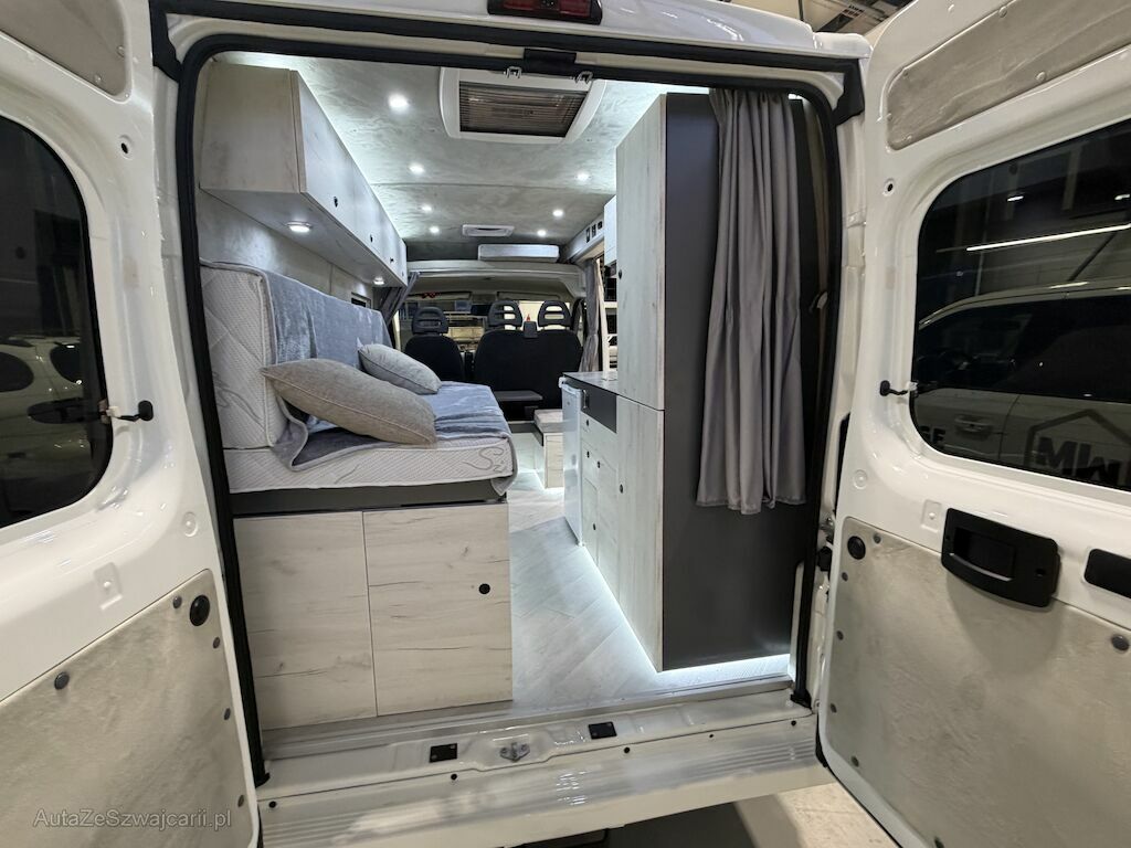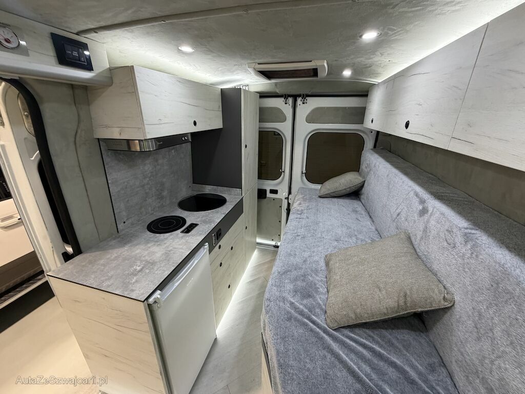 Verkauf im Kundenauftrag. PRIVAT, Fzg frisch als Camper umgebaut. Noch nie Benutzt. Solar auf Dach, WC, Kühlschrank, LED, Frischwasser, Abwasser, Aussendusche, Küche, Diesel Standheizung, 2 Zusatzbatterien. Grosses Bett seitlich auszieh- und verbreiterbar. Sitzecke mit Tisch kann als kleines Bett für Kind umfunktioniert werden. Total 3 Schlafplätze und 3 Sitzplätze. Klimaanlage, Zusätzliches neus DAB Radiogerät dabei. Wird mitgegeben. AHK 2500kg.