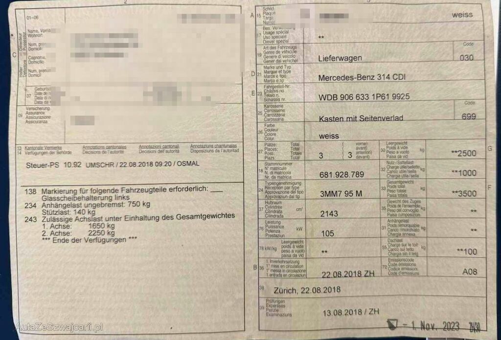 | Typ | Sprinter 314 Kaw. 3665 2.2 CDI 143 |