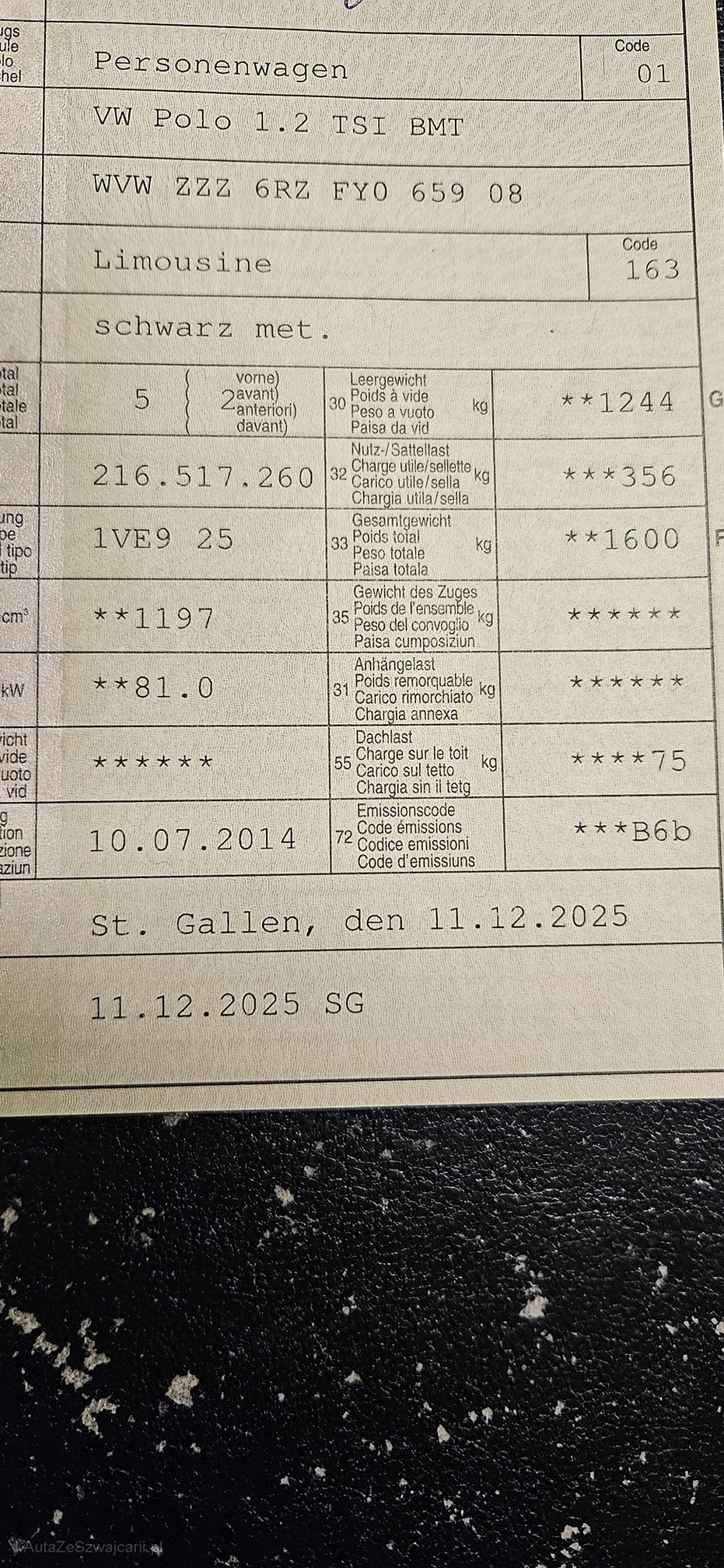 | Kommentar | Frisch ab MFK 11.12.2025 Kein Werkstatt Test durchgeführt Ab Platz ohne Gewähr Fahrzeug muss nach Zuschlag innert 2 Tagen abgeholt werden |