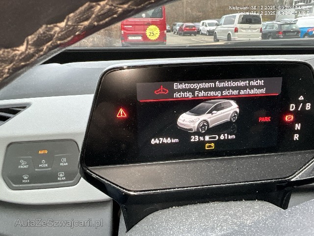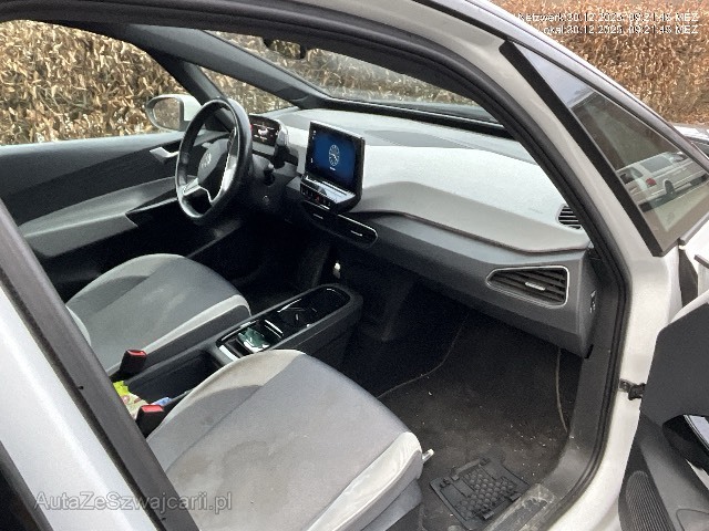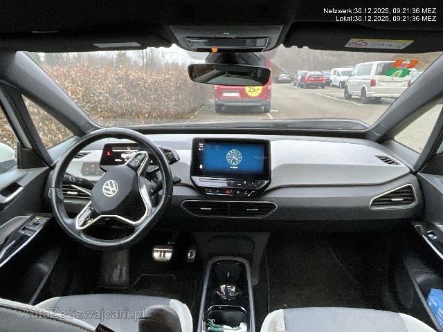 | Serienausstattung | 3-Punkt-Sicherheitsgurte auf allen Plätzen, ABS, EBD elektronische Bremskraftverteilung, AC Batterieladung bis 11 kW, Airbag: Airbag Beifahrer deaktivierbar, Airbag: Airbag Fahrer und Beifahrer, Airbag: Kopf- und Seitenairbags vorn, mit Center-Airbag, Armlehne für Fahrer- und Beifahrersitz, Assist: Ausweichunterstützung mit Abbiegeassistent, Assist: Automatische Distanzregelung ACC, Assist: Einparkhilfe vorne und hinten, Assist: Müdigkeitserkennung, Assist: Spurhalteassistent Lane Assist, Assist: Verkehrszeichenerkennung, Bordcomputer, Bordwerkzeug, Cupholder vorne, DC Batterieladung bis 100 kW, Einfassung des Infotainment-Displays und der zentralen Bedienelemente in Schwarz, Elektronisches Stabilitäts-Programm ESP, Fahrprofilauswahl, Fussgängererkennung, Getriebe: 1-Gang Getriebe automatisiert, Gurtkontrolle, Gurtstraffer mit Gurtkraftbegrenzer, Heckscheiben-Wisch-/Waschanlage, Heckscheibenheizung, ID. Light, ISOFIX Kindersitzvorrichtung, Innenspiegel abblendbar, Klima: Klimaanlage Climatronic, Klima: Pollenfilter (Staubfilter), Lackierung: Dach in Absetzfarbe Schwarz, Lackierung: Uni-Lackierung, Ladekabel für Schweizer Haushaltssteckdose (bis zu 1,8 kW), Ladekabel für Wechselstrom-Ladestationen (bis zu 11 kW), Licht: Drittes Bremslicht, Licht: Nebelschlussleuchte, Media: 4+1 Lautsprecher, Media: Radio mit 10-Zoll-Display und digitalem Radioempfang DAB+, Media: Sprachbedienung, Media: We Connect, Media: Wireless App-Connect, Mittelkonsole, Notbremsassistent, Notrufsystem, Paket: Assistenzpaket, Paket: Design-Paket, Paket: Infotainement-Paket, Paket: Interieur Style, Paket: Komfortpaket, Räder: 18", Räder: Reifenkontrollanzeige, Räder: Tire Mobility Set (12-Volt-Kompressor und Reifendichtmittel), Scheibenwischerintervallschaltung mit Regensensor, Servolenkung, Sitze: Fahrersitz höhenverstellbar, Sitze: Kopfstützen vorne und hinten, Sonnenblende Fahrer und Beifahrerseite - mit beleuchtetem Spiegel, USB-Anschluss, Verbandtasche, Warndreieck und Warnweste, Warnton und -leuchte für nicht angelegte Gurte vorne und hinten, Wegfahrsperre elektronisch, Wärmeschutzverglasung grün, Zentralverriegelung mit Fernbedienung |