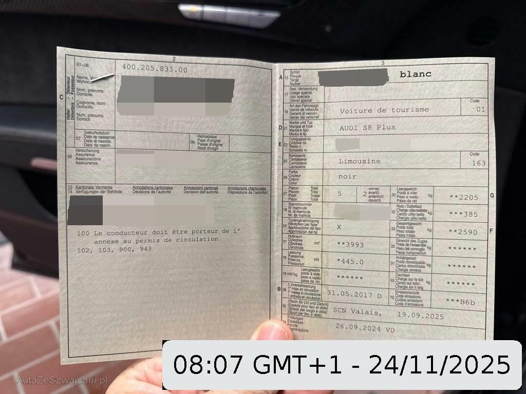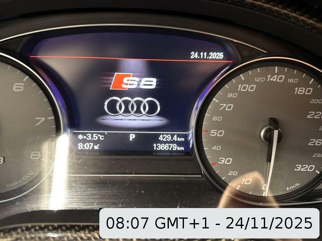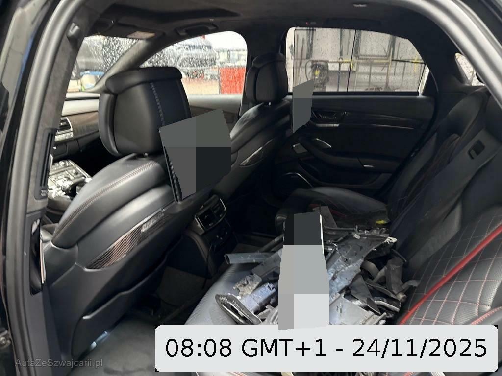 | Serienausstattung | Media: Digitaler Radioempfang (DAB), Airbag: Airbag Fahrer und Beifahrer, Diebstahlwarnanlage mit Abschleppschutz, Allradantrieb permanent, Aussenspiegel rechts und links beheizt, elektrisch verstell- / und einklappbar, Getriebe: 8-Stufen-Automat sequentiell, Kreuzstützen für Vordersitze elektrisch verstellbar, Räder: Reifendruck-Kontrollanzeige, Carbon Applikationen, Fahrer-Informationssystem mit Farbdisplay, Ablagen in den Türen, Garantie: 2 Jahre ohne Kilometerbegrenzung (ab 1. Inv.), Licht: LED Scheinwerfer, Aschenbecher und Zigarettenanzünder, Innenlicht-Abschaltverzögerung, S line adaptive air suspension, Airbag: Window-Kopfairbags, Teppichfussmatten vorne und hinten, Innenspiegel automatisch abblendbar, Servotronic, Sportsitze in Leder/Alcantara, LED Innenlichtpaket, Schalt- / Wählhebel in Leder, Katalysator geregelt, Audi Bluetooth Autotelefon ohne Hörer, Licht: Licht- und Regensensor, Einstiegsschienen beleuchtet, Dynamiklenkung, Licht: LED Heckleuchten, Airbag: Seitenairbags vorne und hinten, Abschliessbare Radschrauben, Armlehne vorne mit Ablagefach, Valcona Leder-Ausstattung, Sportdifferential hinten, MMI basic, Wärmeschutzverglasung, Leseleuchten vorne, Akustikglas, Kartentaschen an den Rückenlehnen, Sitze: Vordersitze heizbar, Media: MMI Navigationssystem Plus, Geschwindigkeitsregler, ISOFIX Kindersitzvorrichtung, Erweiterte Aluminium-Optik, Armlehne für Fahrer- und Beifahrersitz, Bose Surround Soundsystem, Tiptronic-Multifunktions-Lederlenkrad, 3-Speichen, Leseleuchten hinten, CD-/ DVD Wechsler 6-fach, Anfahrassistent, Ausstiegsleuchten in den Türen, Untere Decoreinlagen Aluminium gebürstet silber, Adaptives Bremslicht, Klima: Klimatisierungsautomatik, Komfortschlüssel, einschließlich sensorgesteuerter Kofferraumöffnung, Abstandskontrolle für vorne und hinten, Tagfahrlicht, Leichtmetallfelgen mit 5 parallelen Speichen, 20J |