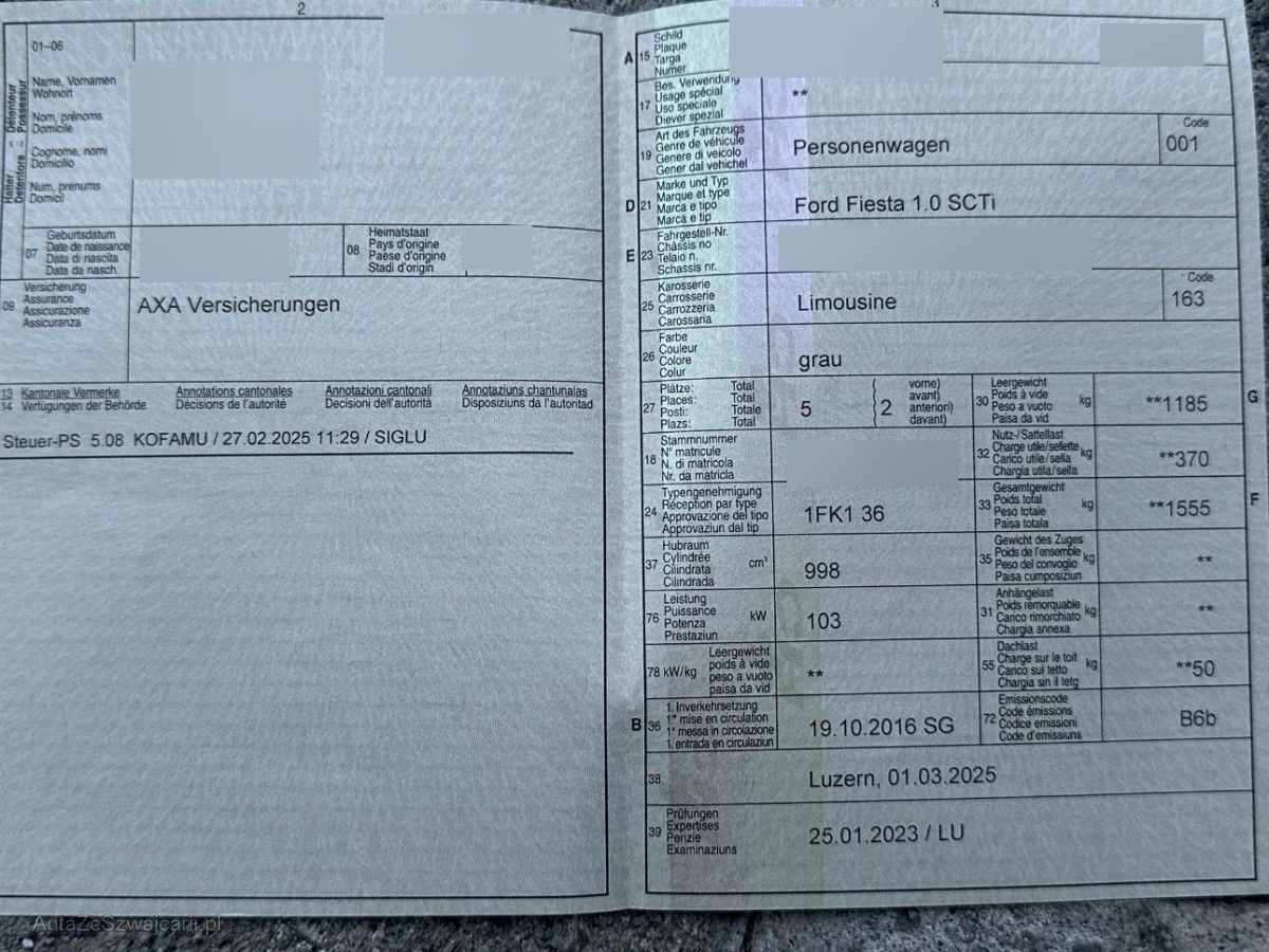 | Fahrzeugausweis | Vorhanden |